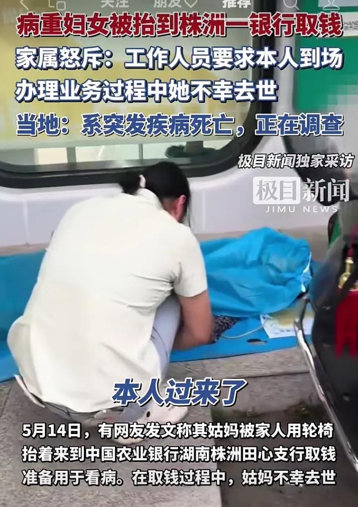 老人死在银行,谁该跪地道歉?你见过最荒唐的死法是什么?是重病缠身的老人被亲闺女推着轮椅,在银行大厅活活耗死!2025年这张沾血的存单,狠狠扇了所有人一耳光。 密码忘了?必须本人到场!银行柜员冷冰冰甩出这句话时,可曾想过对面是坐着轮椅的老年患者? 全国3000万失能老人,难道每次取钱都要被担架抬进银行?所谓"人性化服务"贴在墙上当装饰? 从柜员到行长,谁为这场"合法合规"的谋杀负责?监控录像里老人逐渐涣散的眼神,不该成为金融体系的墓志铭! 卫健委数据显示,心源性猝死黄金抢救时间仅4分钟!而银行急救设备配备率不足30%,工作人员持救护证比例更低于5%——这不是服务大厅,是吃人的修罗场! 当我们老去,别再让"按规定办事"成为刽子手的遮羞布!今天容忍银行逼死老人,明天被逼上绝路的可能就是你我。