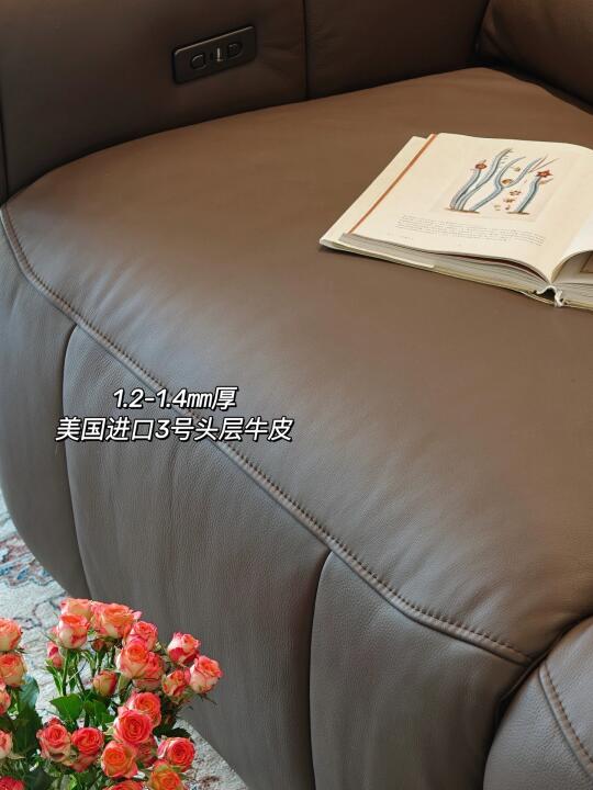 沙发背景墙4.1米,搭配头等舱贵族系列「安第斯」真皮功能沙发,给客厅增添了几分高级;零靠墙的设计可以紧贴墙面摆放,减少卫生死角也更节省空间;巧克力棕的配色,透露着浓浓的故事感,和我家的复古风完全适配