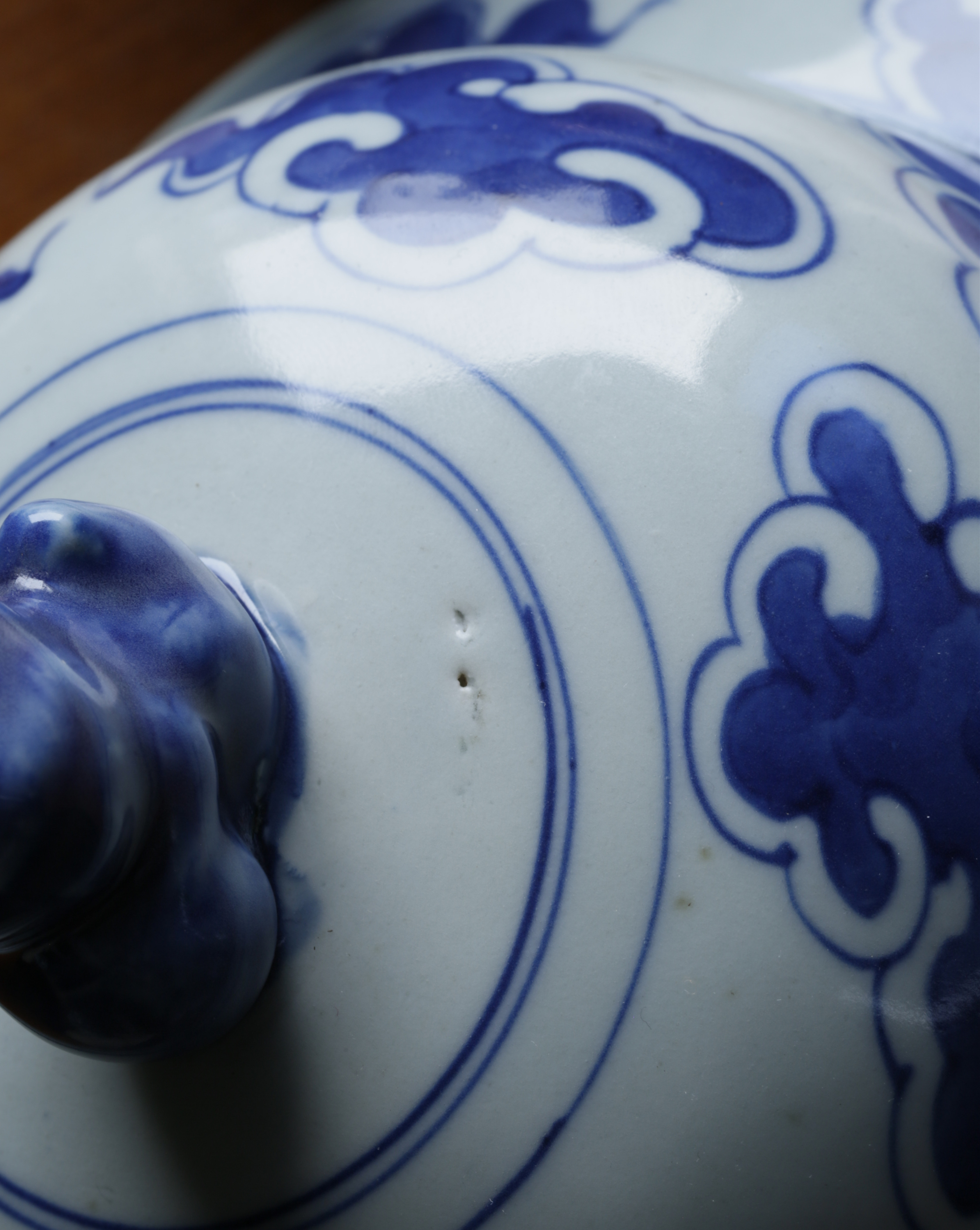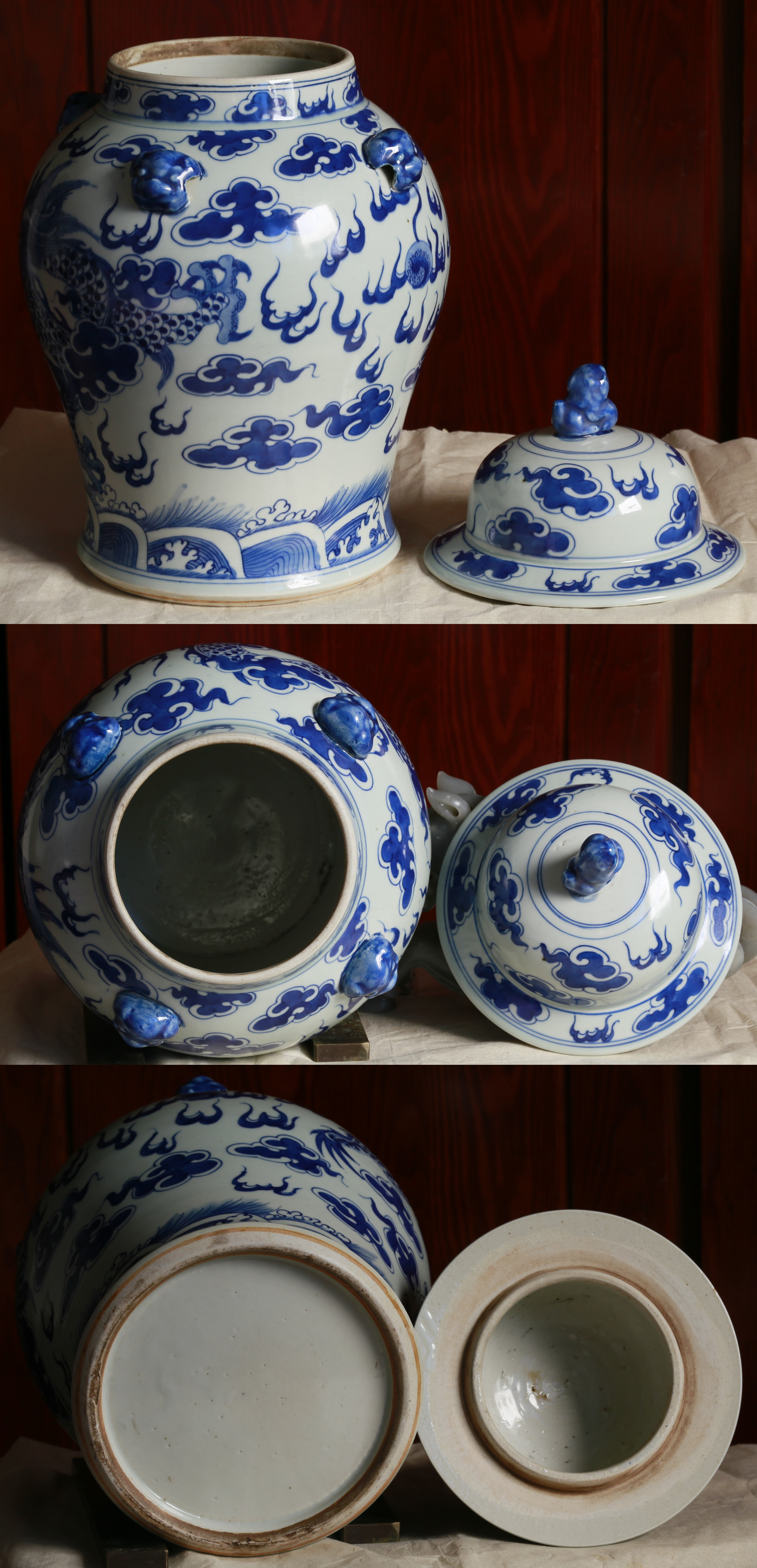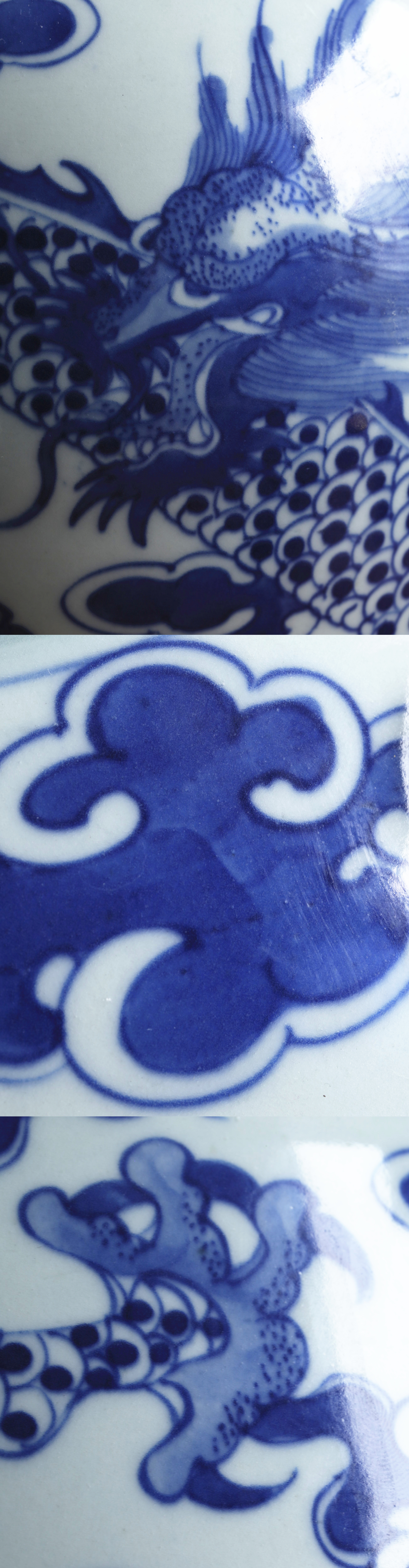 清晚期景德镇民窑青花瓷作品、画工流畅自然,龙畫得很有气势,青花发色漂亮,气泡在青花之上、青花下沉,器型硕大、釉面滋润、光亮如镜,画面和谐,乃清晚期龙纹青花将军罐精品,收藏价值极高。