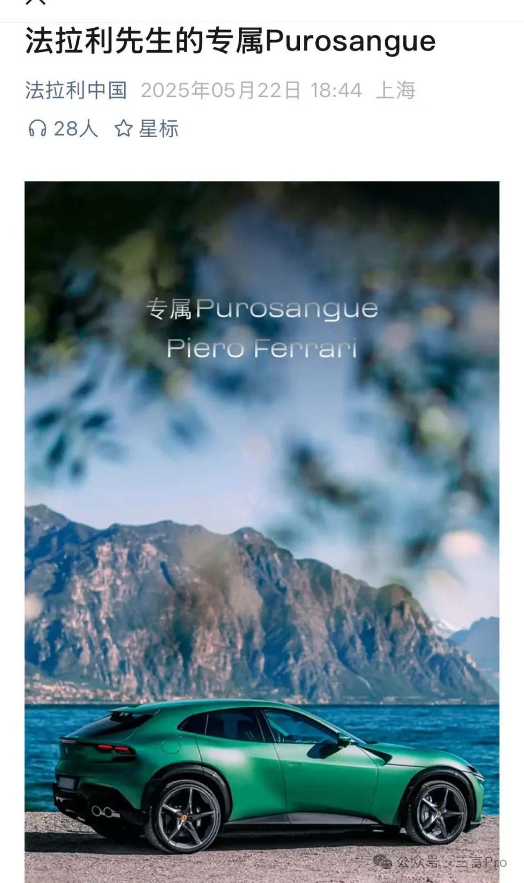 今晚小米发布会前15分钟,法拉利中国公众号发文,文中有多张配色车型与YU7相近的照片。