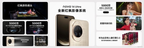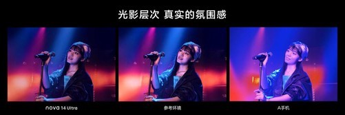 其中华为nova14Ultra搭载了华为独有的旗舰级三RYYB镜头组合,包括5000万RYYB可变光圈防抖镜头(支持F1.4-F4.0十档物理可变光圈)、5000万RYYB大光圈潜望长焦镜头(支持3.7倍光学变焦和高达100倍的数字变焦)和1300万RYYB超广角微距镜头,带来后置全焦段红枫质感人像拍摄能力,真正实现一部手机满足多种取景需求。得益于此,无论是旅行打卡、夜市街拍,还是Livehouse的舞台表演,它皆能轻松捕捉每一个精彩瞬间。