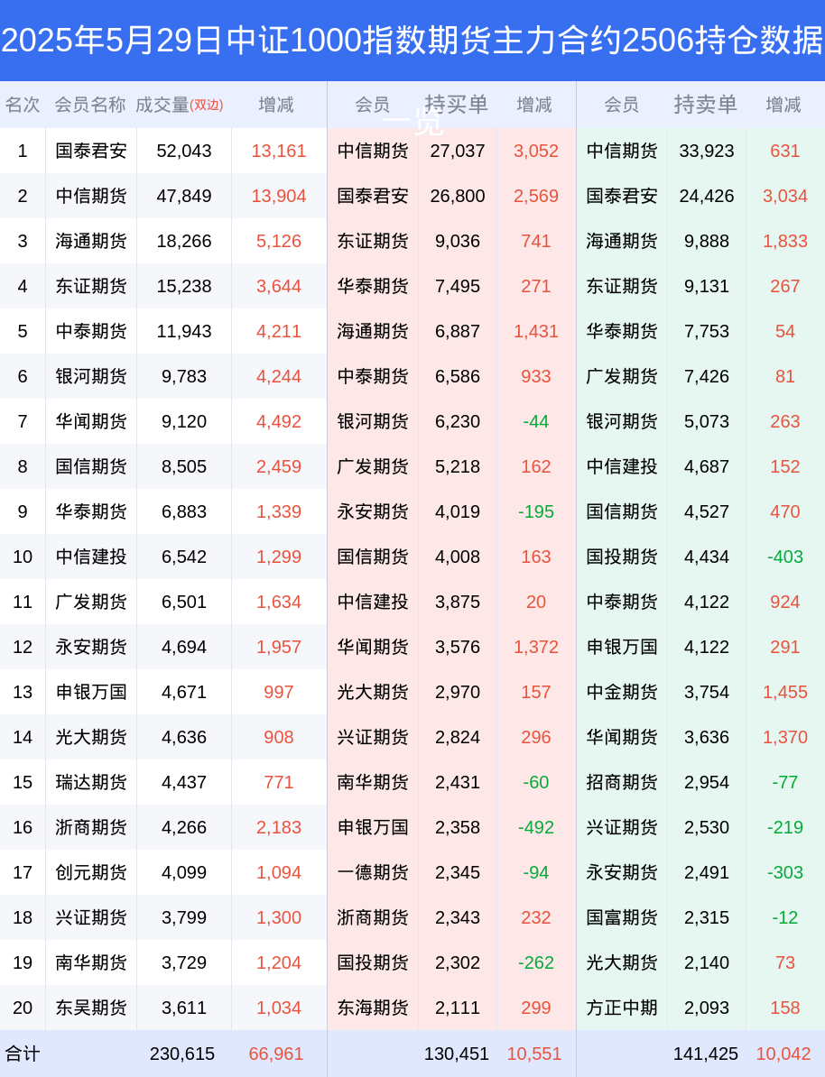 新浪期货根据交易所数据,截至5月29日收盘主力合约中证1000指数期货2506,涨跌+2.35%,成交量16.64万手,持仓数据显示前20席位呈现净空,差额头寸为10974手。