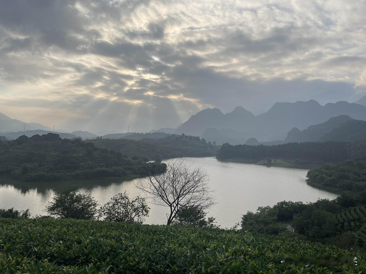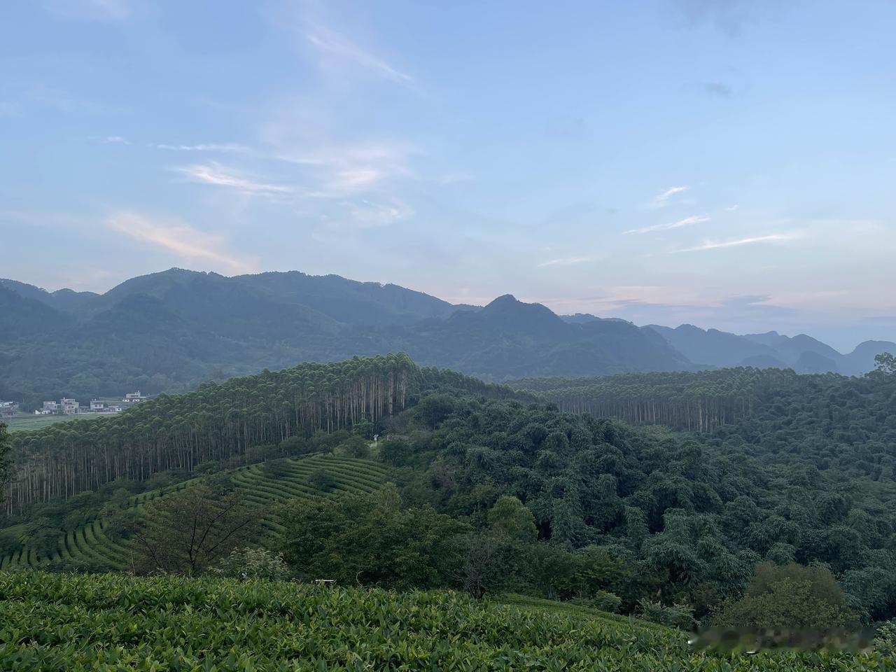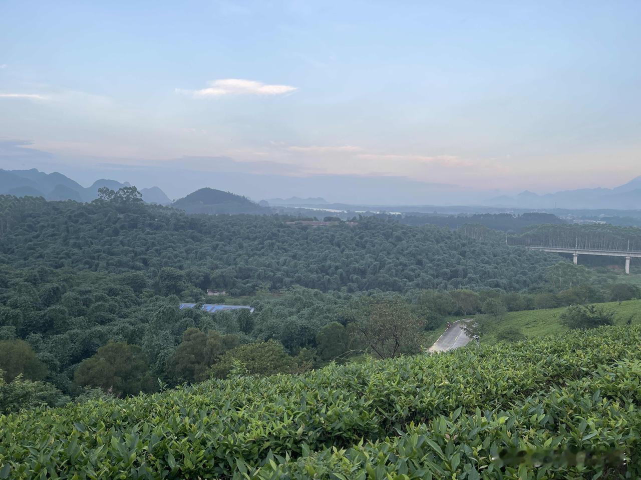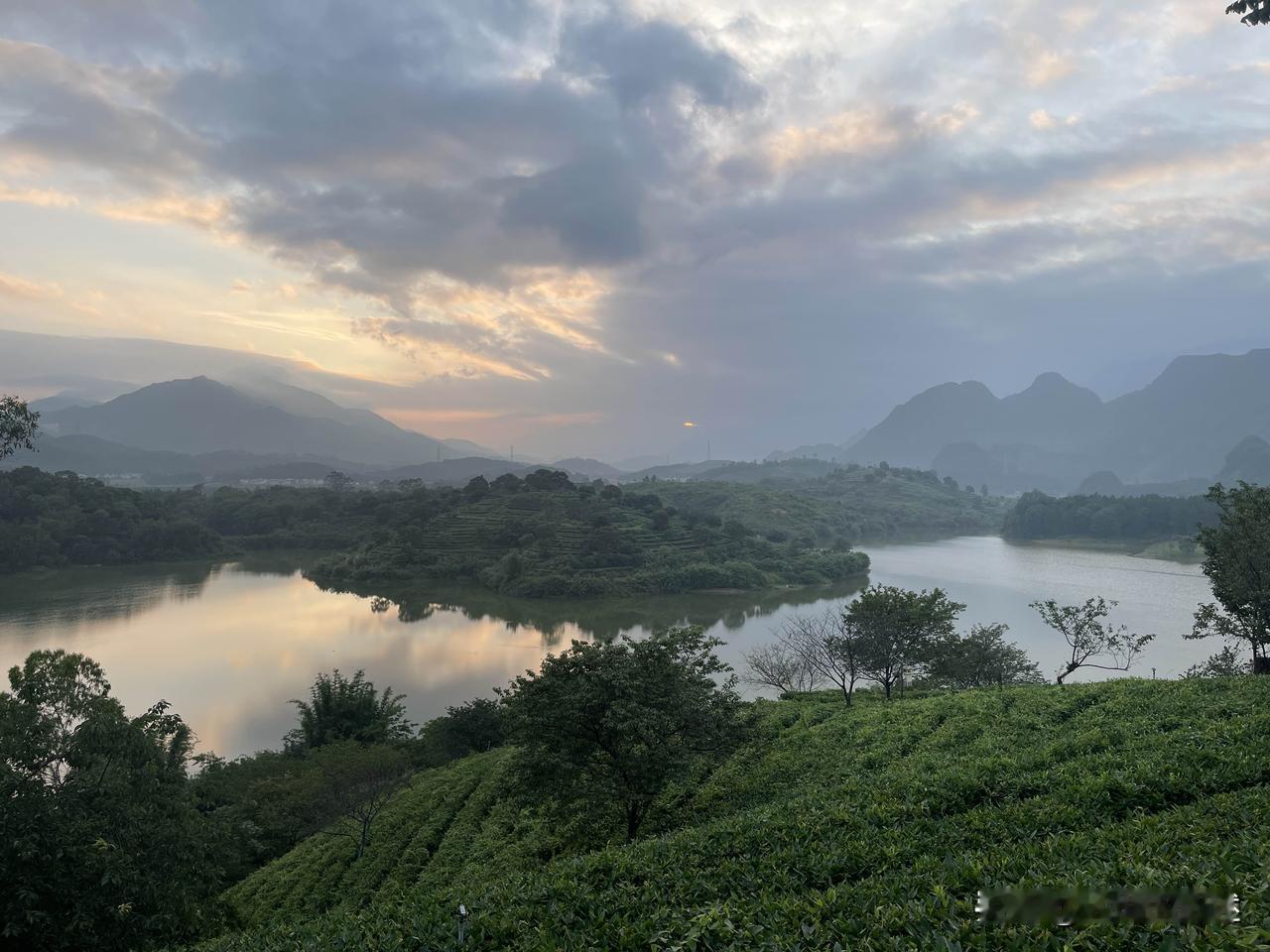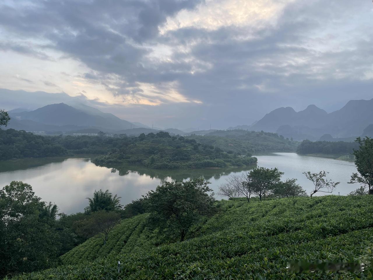 早上5点半爬到茶场的好处,满怀信心地等待着日出,结果嘛……昨晚下点小雨的缘故,远处高山水雾缭绕,偶尔泛着金黄,山的背光处被薄薄雾萦绕着,美!