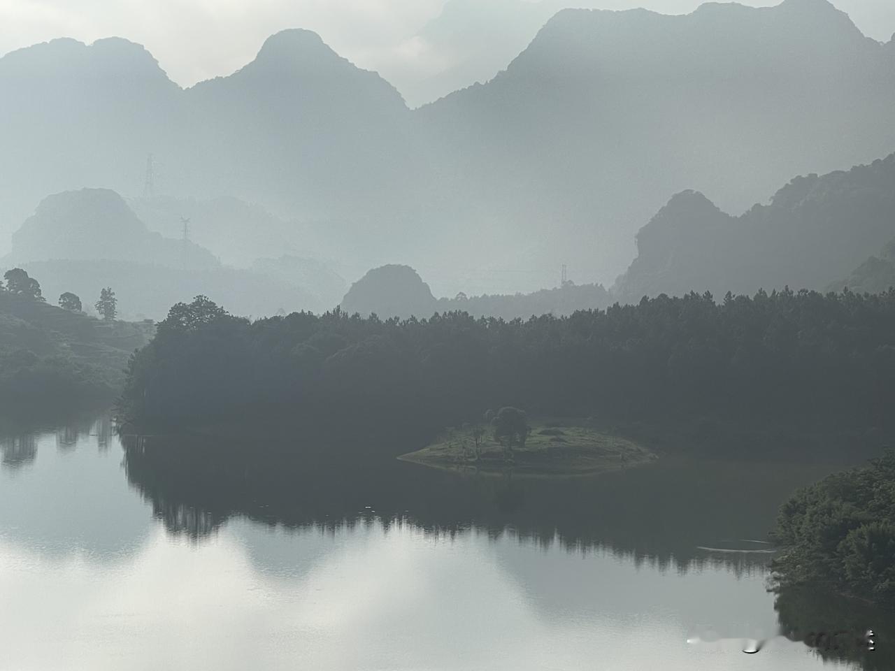 登上会仙沐宦头的山头俯瞰山下“玻璃田”,只是天气不给力,一片雾霾,攀山的难度不高