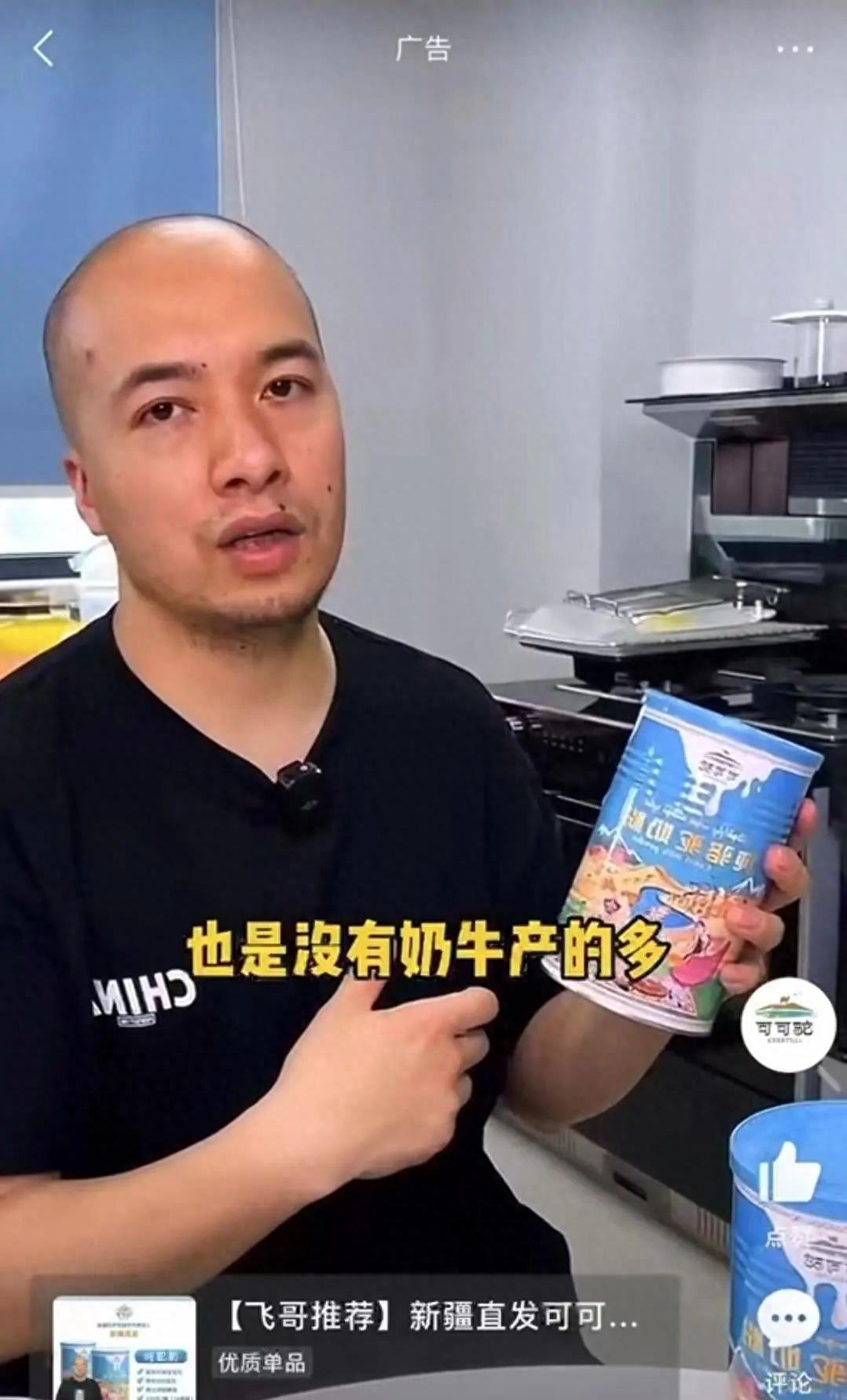 网红辛吉飞为可可驼纯骆驼奶粉做推介。视频截图