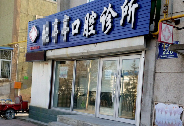 在一条曾经热闹的商业街上,几家牙科诊所已经关闭,门口的招牌上还残留着模糊的字迹,门窗紧闭,透过玻璃窗可以看到里面的设备蒙上了一层灰尘。