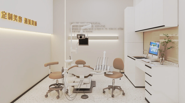 诊所内部布置精致,墙面涂成柔和的米白色,营造出温馨而专业的氛围,诊疗室内的高档牙椅和先进的器械无不显示出这一行的高利润和现代化。