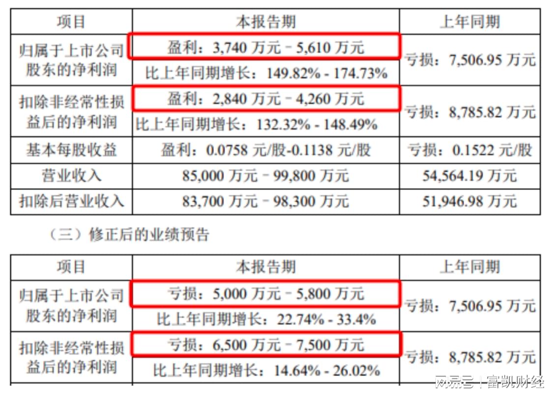 由此,鸿博股份寄予厚望的AI业务直接导致了业绩预告“变脸”。日前,鸿博股份发布了《2023年度业绩预告修正公告》,根据公告,公司预计2023年归属于上市公司股东的净利润更正为亏损5000万元至5800万元,扣非净利润为亏损6500万元至7500万元;此前预计归属于上市公司股东的净利润盈利3740万元至5610万元,扣非净利润盈利2840万元至4260万元。