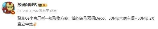 博主还提到,一加13T的6.3X小直屏是1.5K定制屏,一加今年设计大改,新机Deco变得更加简约。镜头设计是横向小矩阵,非常简约,有点像pixel。采用1/1.56英寸的50Mp IMX906主摄,没有潜望镜,配备了一颗50Mp 2X直立中焦。采用骁龙8 Elite,目前工程机测试短焦指纹,内部还在考虑要不要上单点超声波。 ·编辑点评 对于小屏手机用户来说,续航一直是痛点之一。超越同尺寸机型的电池容量,再加上功耗远低于2K大屏的1.5K定制小直屏,相信一加13T可以将小屏手机的续航能力提升到一个新高度!