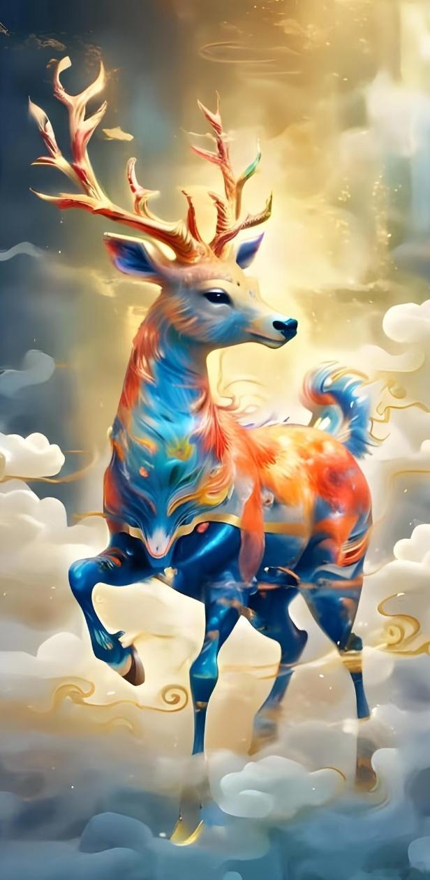 七色鹿寓意着吉祥,只有有灵性的人才能刷到。