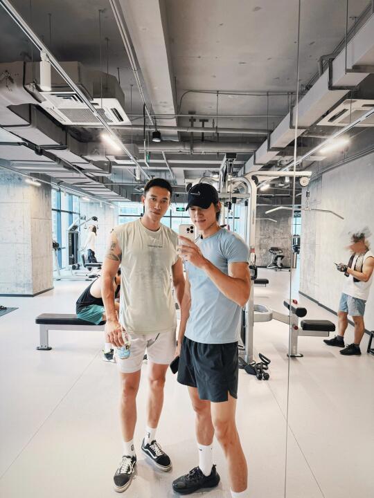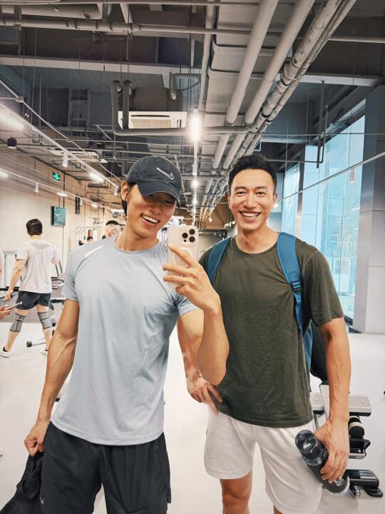 我的好兄弟james从国外回来了可以一起健身啦,尊嘟非常开心呀,下雨天的健身房也是超级多人[笑哭R][笑哭R][笑哭R]