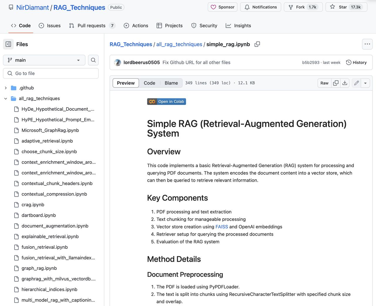 #最全RAG教程资源库##一站式RAG玩法集合# 最近,这个在Github收获了17.3k星的RAG教程资源库又小火了一把! 如果你想全面掌握RAG技术,从最基础的检索查询到构建高级可控智能体来处理复杂任务,这个资源库都能满足你。【图1】 这个资源库目前包含了34项不同的RAG技术教程,每项技术都提供了完整的文档教学,并且是一个实用的实施指南。【图2】 下面分享一个这个资源库的大致目录,帮你快速了解它能提供什么:【图3】 基础知识:基于CSV文件的检索增强生成、优化分块尺寸、命题分块技术等 查询增强技术:查询转换、HyDE(假设性文档嵌入)、HyPE(假设性提示嵌入) 上下文富化机制:上下文分块标头、相关片段提取、上下文窗口增强、语义分块技术、文档增强处理等 高级检索系统:融合检索系统、结果重排序、多维度过滤、层次化索引等 迭代优化方法:反馈检索系统、自适应检索等 效果评估:DeepEval评估框架、GroUSE优化算法 可解释性:可解释检索 高级架构:基于LangChain的图式RAG、微软GraphRAG系统、自检索增强生成等 核心协作机制:基于Milvus向量数据库的Graph RAG 特殊技术:高级可控智能体 这个教学资源库还在持续更新最新的技术进展,强烈建议感兴趣的同学果断收藏! 项目地址:-ov-file