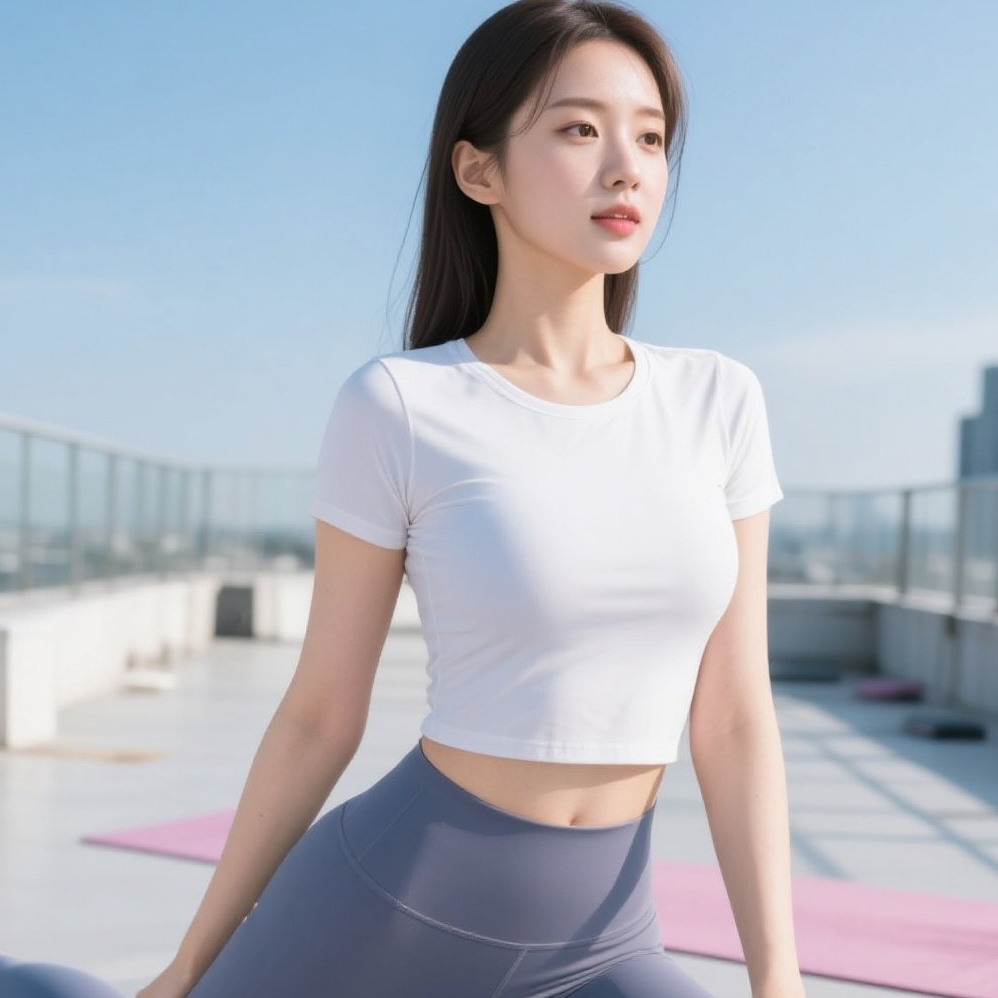 天台瑜伽美如画,少妇柔姿展风华
