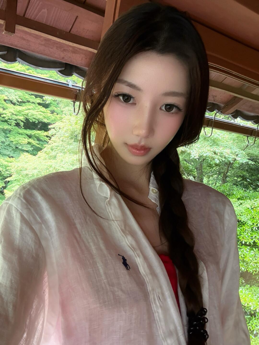 少女心满满的一天,粉色T恤与湖畔美景的完美搭配!💕🌸🌿