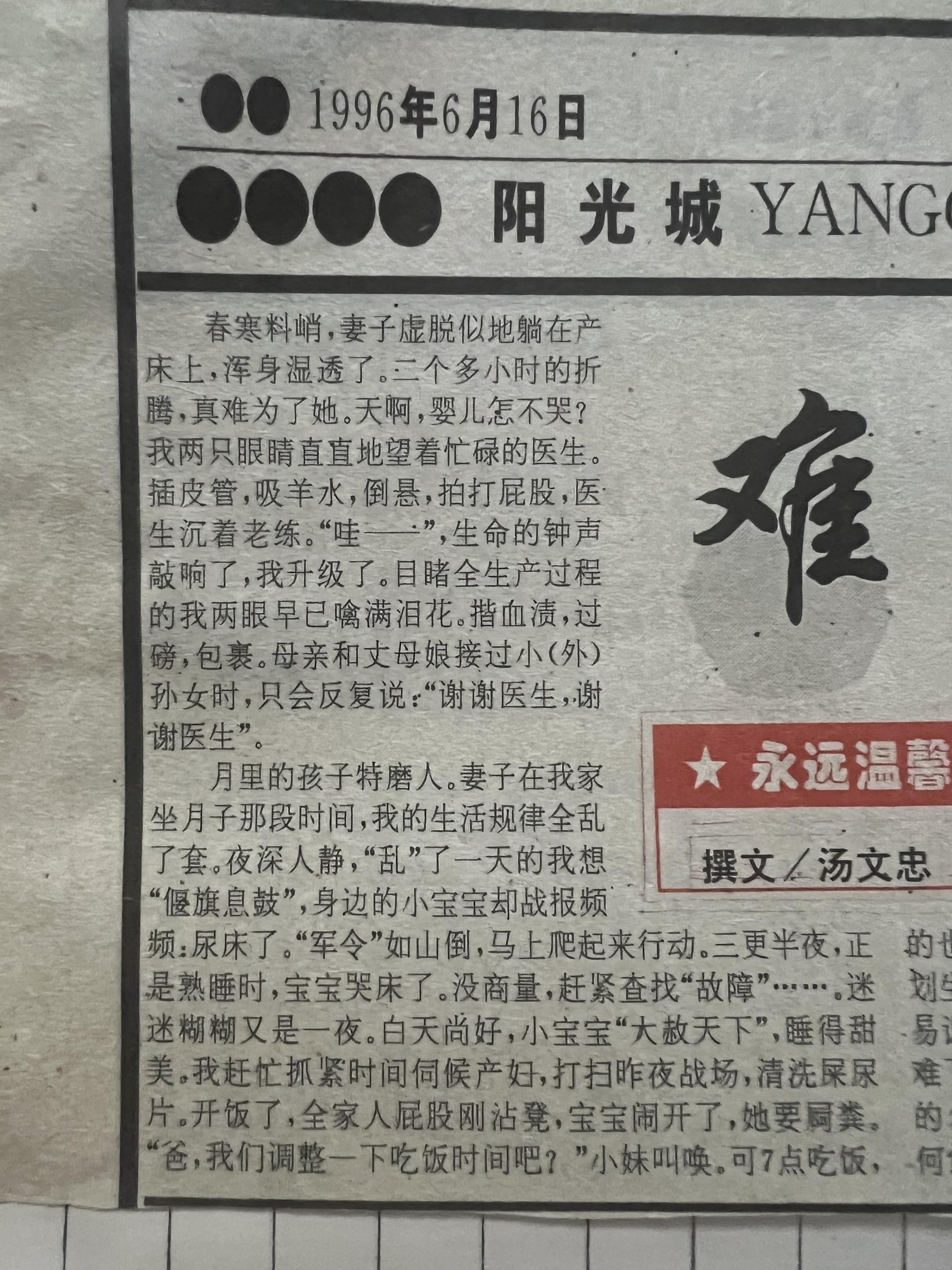 父亲29年前写的散文《难为人父》,父亲节快乐!