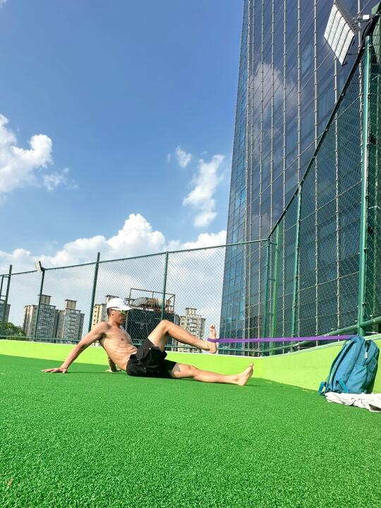 原来是我办卡的地方,真是我的美黑福地~蓝天白云绿草没人,自个儿练完在这儿晒上个一小时真的巴适的很[得意R][得意R]感谢changePro 提供的这么物美价廉的场地(我真的搞不懂网上还有人嫌这嫌那的……100多一个月还要咋样 都吃沙县了你还嫌里面鸭肉不是散养鸭吗)自己够认真徒手都能练出好身材~