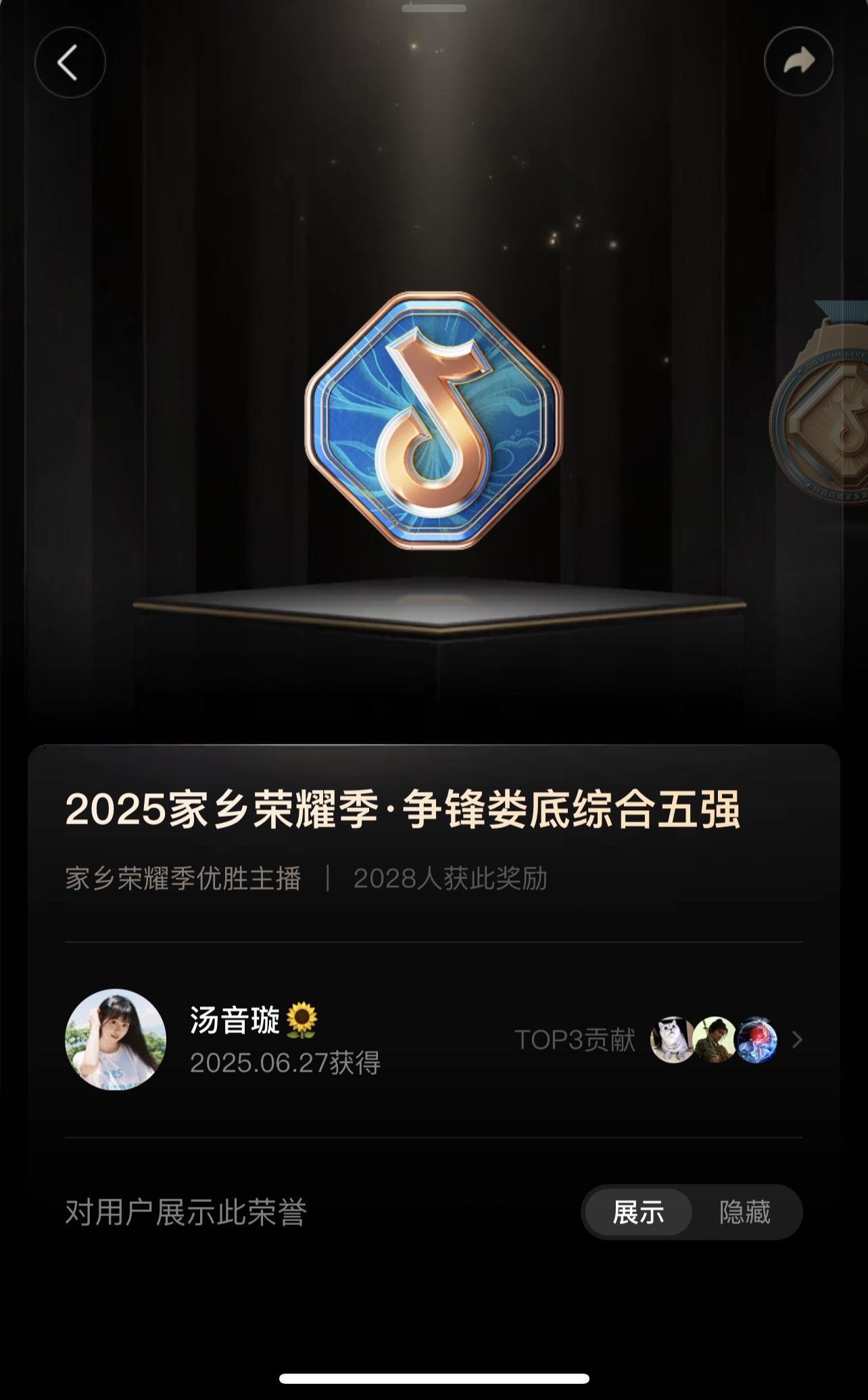 直播第296天,拿下家乡荣耀季·娄底综合赛道第4名,在我心里有一份长长的感谢名单。特别感谢HiHi弟,至尊宝哥,夜哥,滚滚哥,大眼睛哥,白狐哥,风哥,33哥,小张哥,时羽哥,阿兰哥,星满天哥,安全哥,德哥,微光哥,左公柳哥,痕迹哥和所有的兄弟姐妹们…这次比赛异常激烈,谢谢大家不离不弃带给我的好运。这辈子永不后悔的事就是成为一名网络主播,我为拥有你们的爱而骄傲。