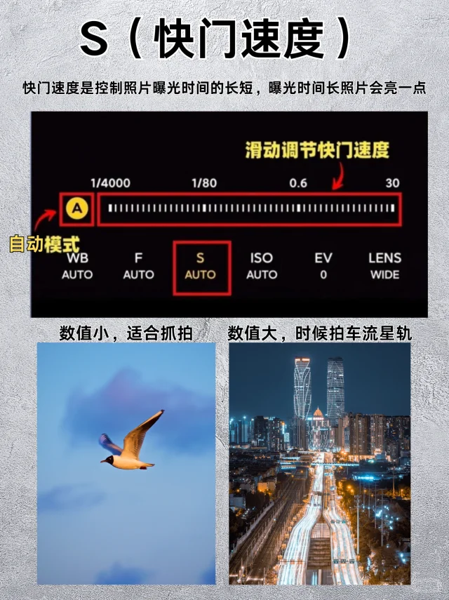 2⃣S: 快门(数值越小,快门越快,数值越大,快门越慢)