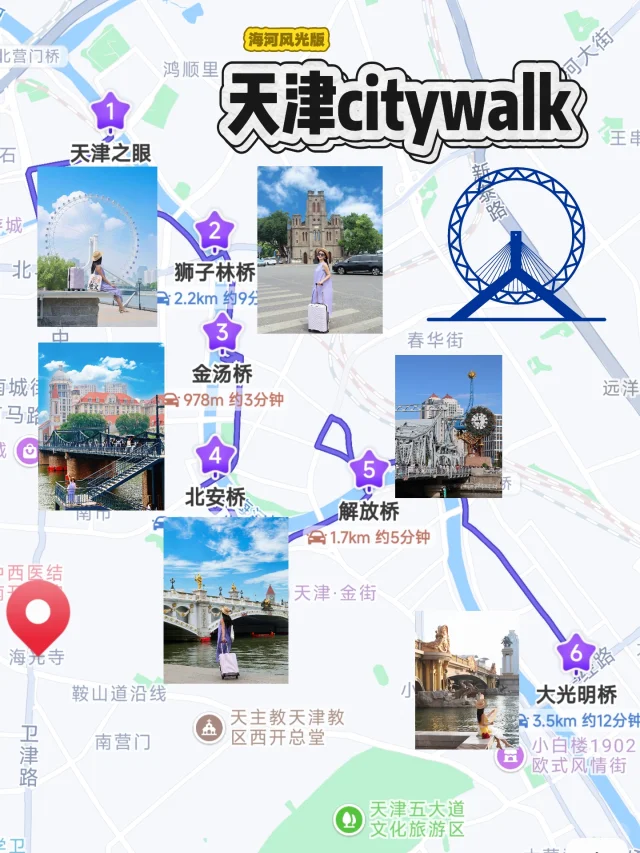 天津之眼-狮子林桥-古文化街-金汤桥-北安桥-解放桥-大光明桥