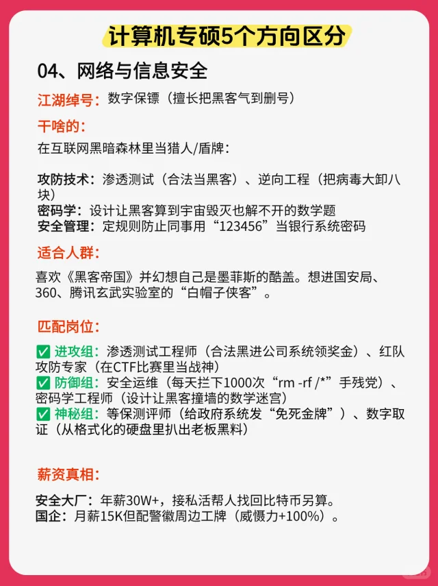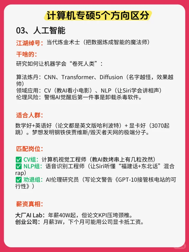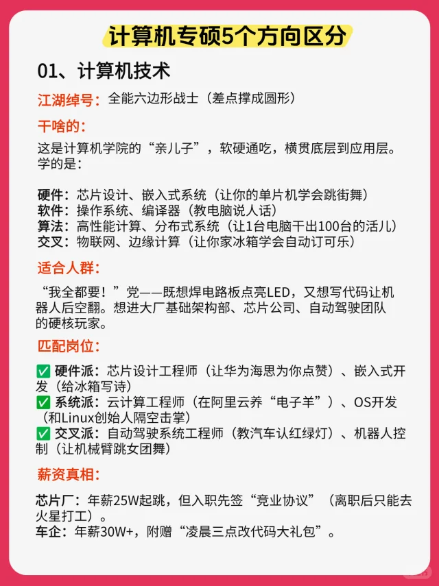 计算机专硕 5 个方向怎么选?纠结选方向的宝子看过来!从就业前景到适合人群,帮你精准匹配,属于是选择大于努力👇