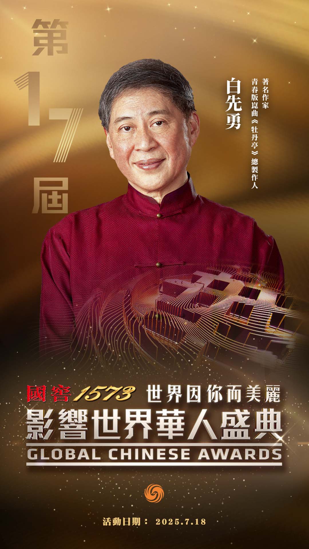 #第17届影响世界华人盛典# 【一起见证白先勇“第17届影响世界华人盛典”荣耀时刻!】白先勇,著名作家,青春版昆曲《牡丹亭》总制作人。他的作品《台北人》入选20世纪中文小说100强第七位,是仍在世作家作品中的最高排名。 除文学创作与教学外,白先勇一直致力于推动昆曲复兴,被称为“昆曲义工”。他作为总制作人的青春版《牡丹亭》已在全球巡演超过500场,成为“新世纪昆曲复兴第一剧”,让昆曲观众平均年龄普降三十岁。从中华传统文化里汲取创作养分,又身体力行反哺传统文化的传承复兴。 7月18日晚(星期五),关注“世界因你而美丽——第17届影响世界华人盛典”,一起见证白先勇“第17届影响世界华人盛典”荣耀时刻!#世界因你而美丽#