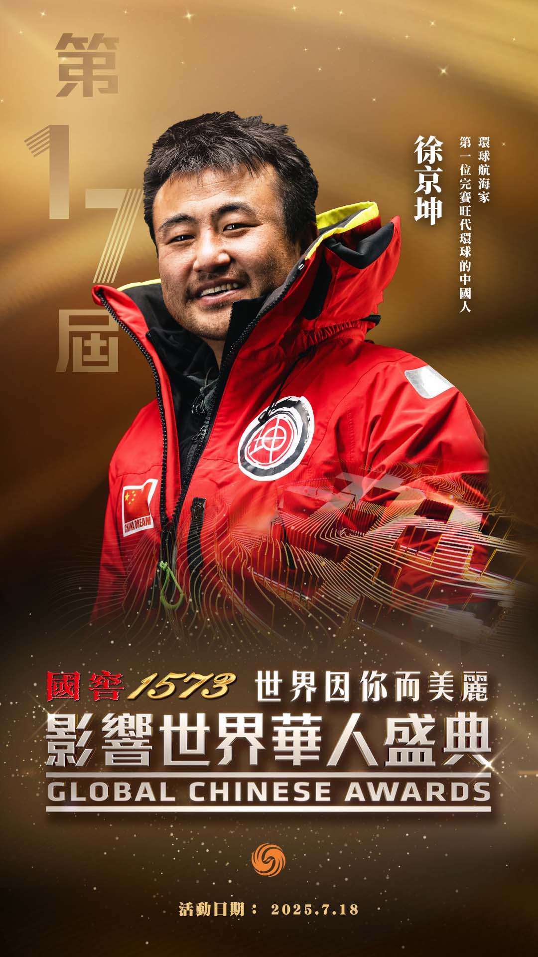 #第17届影响世界华人盛典# 【一起见证徐京坤“第17届影响世界华人盛典”荣耀时刻!】徐京坤,环球航海家、第一位完赛旺代环球的中国人。徐京坤是亚洲唯一完成“航海三大满贯”的船长,中国双体帆船环球航行第一人,唯一完成两次环球航行的中国人。 2025年2月18日,徐京坤以99天19小时06分的成绩完成旺代单人不间断环球帆船赛,成为这项被誉为“航海界珠穆朗玛峰”的赛事百年历史上的第100位完赛者。这次完赛,不仅是他的巅峰成就,更标志着中国离岸帆船运动进入全新时代。正如航海界评价:“当他的帆影划过终点线时,中国离岸航海史从此分为两页。” 7月18日晚(星期五),关注“世界因你而美丽——第17届影响世界华人盛典”,一起见证徐京坤“第17届影响世界华人盛典”荣耀时刻!#世界因你而美丽#