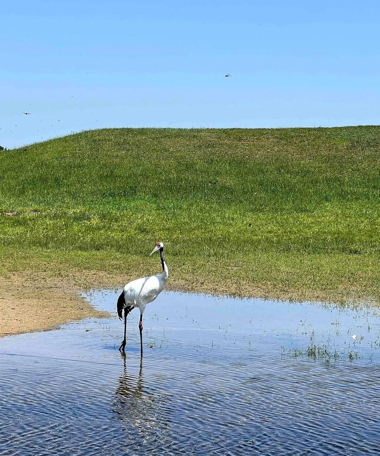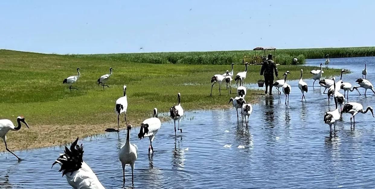 黑龙江省齐齐哈尔市美丽的鹤城,拍摄于扎龙自然保护区。仙鹤在自由自在戏水觅食。