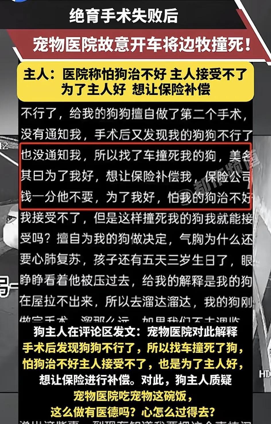绝育手术失败,宠物医院开车把狗撞死后续,狗主人下架视频,知情人透露更多。 近日,