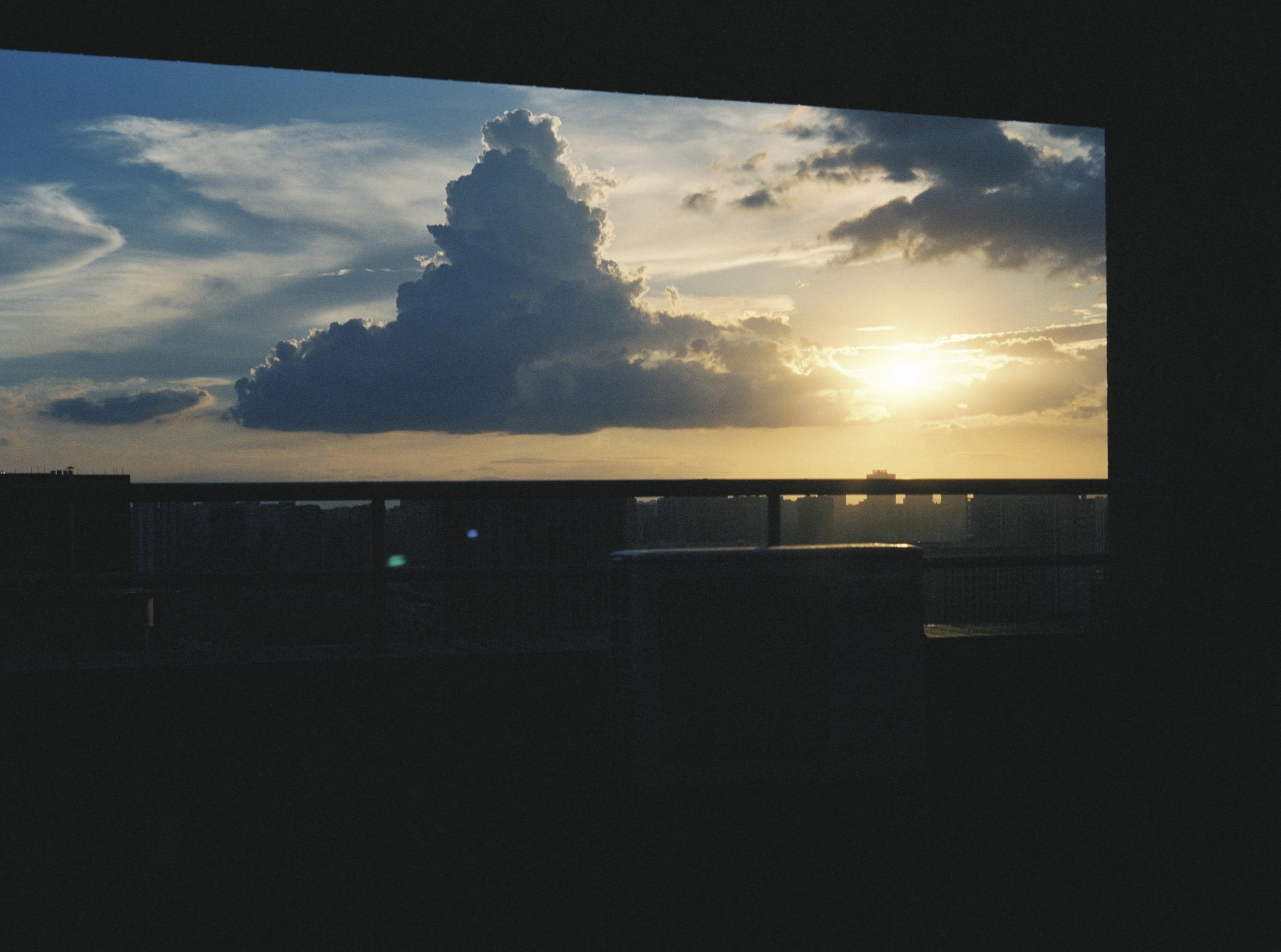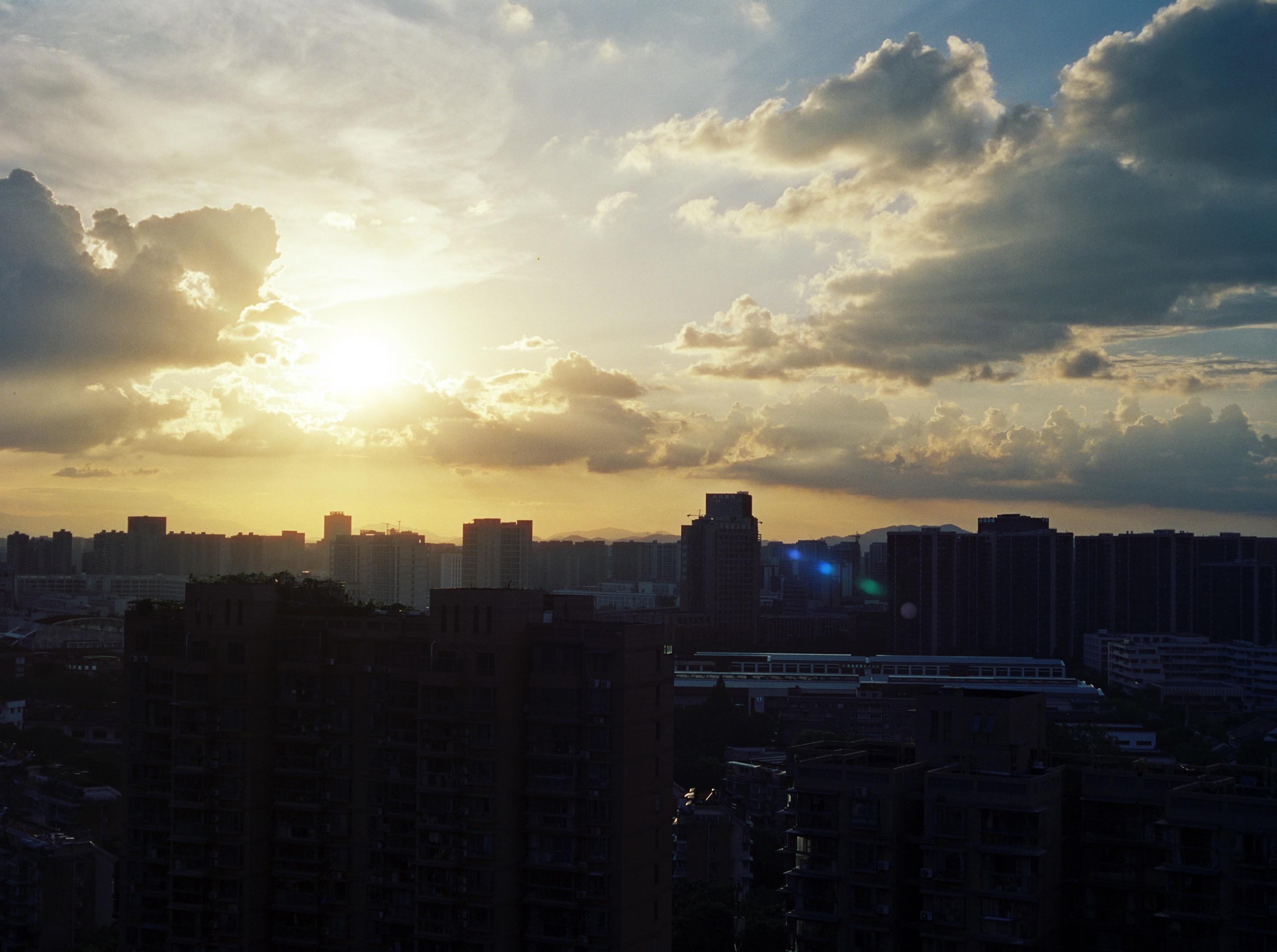下过雨的夏天傍晚。