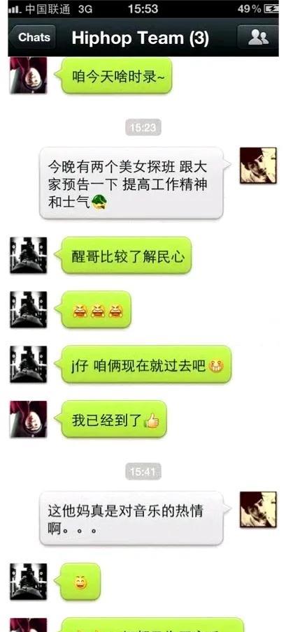 考古苏醒和团队,苏醒在hiphop团队群通知:今天有两个美女探班,跟大家预告下,提供工作精神士气。 佳楠:醒哥比较了解民心,J仔我们现在就过去吧 J仔:我已经到了 苏醒:特么真是对音乐的热情… 哈哈哈哈哈哈这该不会是当年的裂人帮吧,两个美女是鲁赛赛茹茹她们?《让世界听见》真的超好听!