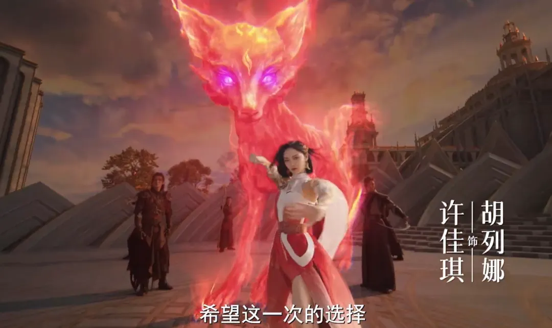 胡列娜的武魂是妖狐,素有天狐的美誉。许佳琪很贴合胡列娜,开武魂的时候,背后还有一条尾巴。可惜没有动漫里胡列娜魅惑五怪的剧情,不然肯定很有看点。