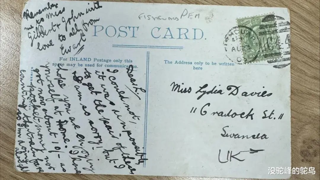 这张明信片最初是在1903年寄出的,却在英国邮政的系统中待了一个多世纪。直到今年8月,斯旺西建筑协会的营销和通讯官Henry Darby在整理邮件时才发现了掉落在地的明信片。