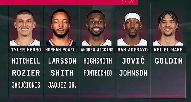 下赛季热火的潜在首发和轮换名单,详情如下: 控球后卫 首发:希罗 替补:戴维恩-米切尔 罗齐尔 亚库契奥尼斯 得分后卫 首发:鲍威尔 替补:拉尔森 德鲁-史密斯 哈克斯 小前锋 首发:维金斯 替补:海史密斯 冯泰奇奥 大前锋 首发:阿德巴约 替补:约维奇 凯沙德-约翰逊