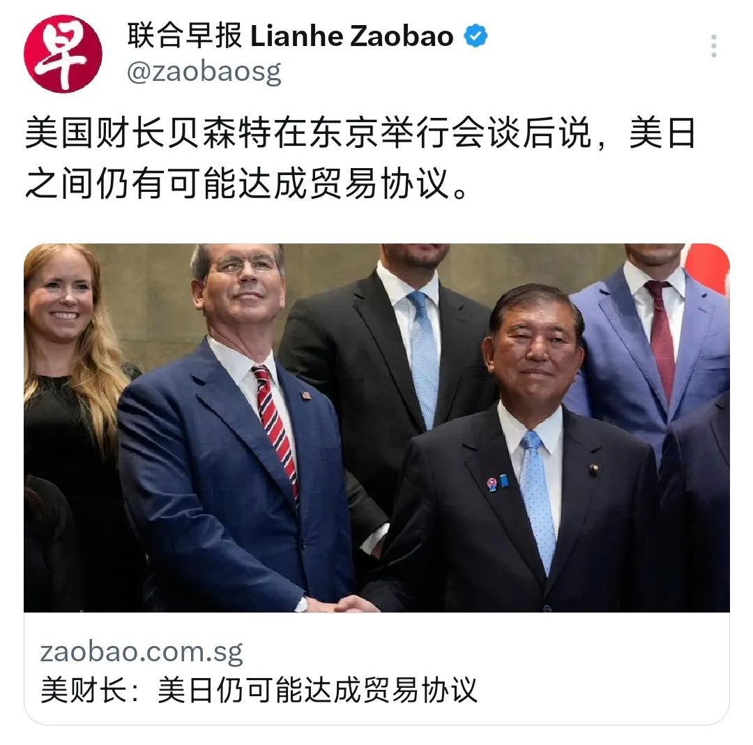 外媒昨晚(7月18日晚)报道:“美国财长贝森特在东京举行会谈后说,美日之间仍有可