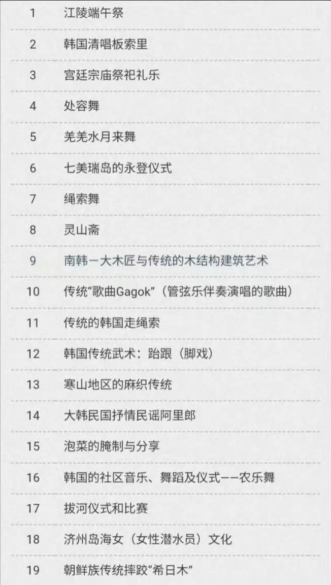 韩国泡菜、江陵端午祭、大木匠技艺等五项非遗申请遭遇联合国教科文组织全面“退货”,中国网友拍手叫好! 实际上,这种文化成果的抢夺和据为己有,也是一种偷窃或抢劫,与西方几百年来的海盗传统如出一辙。 看看这个清单,除了泡菜、江陵端午祭、大木匠技艺之外,什么绳索舞、走绳索、拔河、潜水和猎鹰训练术,都称是他们的传承并拿去申遗,是不是太丧心病狂了!