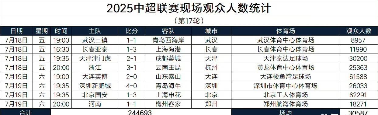 中超本轮现场观众人数统计表把我们武汉主场人数排第一行,不就是要彰显我们武汉拖后腿