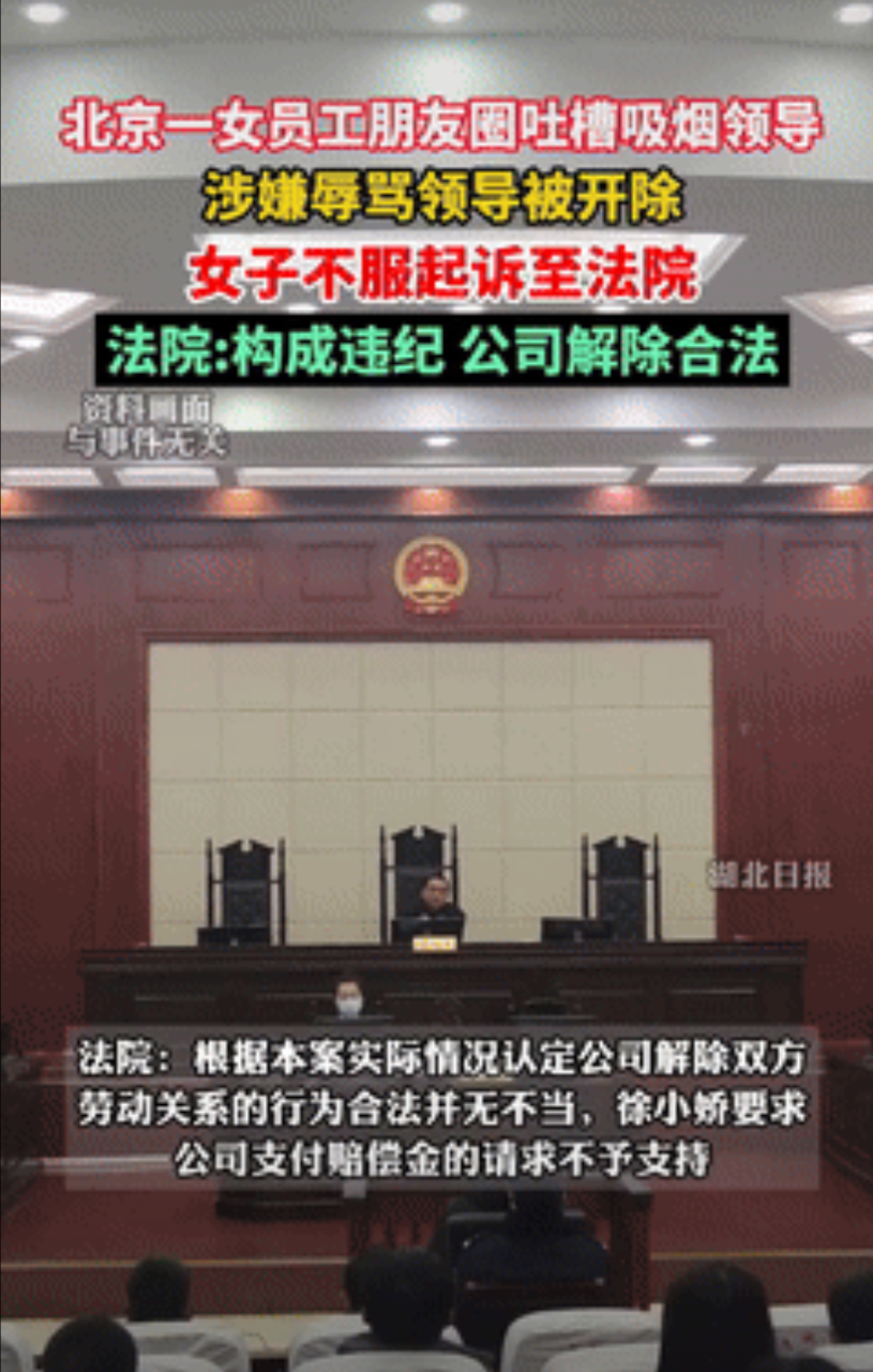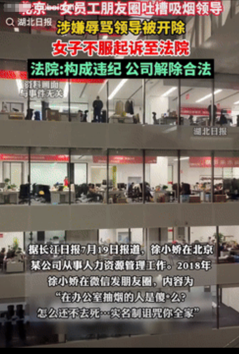 祸从口出!北京一女子上班时,遇到领导在公司里抽烟,下班后她就发朋友圈辱骂领导,被