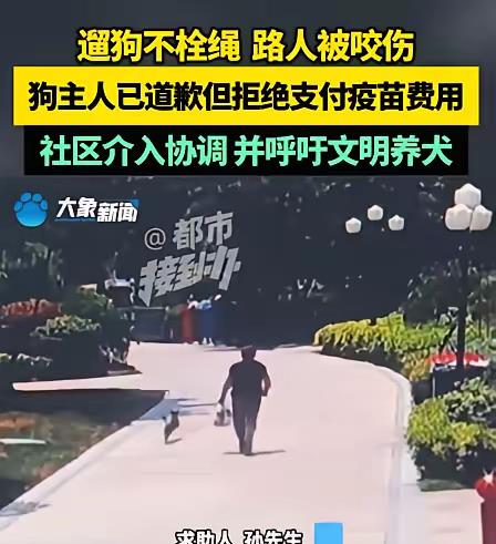 河南,一女子遛狗时没牵狗绳,狗冲上去咬了过路的男子,女子说:赶紧去治!男子去医院打了狂犬疫苗后,女子说:可以道歉,赔钱,门都没有! 孙先生被狗咬了后,第一时间来了医院,医生开具了狂犬疫苗,在接种了疫苗后,孙先生将医院缴费明细单拍照发给了该女子。 结果再联系女子时,女子像完全变了一个人,不但拒绝赔偿,态度还极其恶劣。她在电话里大声叫嚷着:“两千多?怎么可能?你这就是讹人!” 孙先生彻底蒙圈了,自己好好的走在路上,莫名其妙的被狗咬了一口,自己还没有发脾气,找狗主人的麻烦,狗主人还倒打一耙,说自己讹人。 孙先生说:“医院的费用明细单上一笔笔清清楚楚,5针狂犬疫苗,还有2针破伤风针,再就是其他杂七杂八的费用,一共2000余元,我怎么讹你了。” 并且孙先生也没有要狗主人赔付其他的费用,仅仅只需结清医疗费,竟然无端端的被人说自己讹人,孙先生越想越气。 狗主人非但不认账,居然说:“我家老太太知道这件事后,胸口到现在都扑通扑通的跳个不停,老太太要是被吓出了好歹,我还要找你算账呢!” 孙先生没办法,找到了社区工作站,希望他们能出面调停。当社区工作人员找到该女子时,女子语气仍然强硬。 “我家狗咬了人,我们认,但是治疗费怎么可能需要2000多,他就是故意讹人的。”女子还是不松口。 社区工作人员耐心解释说:“这医院的账单都是有明细的,孙先生确实是因为被您家狗咬了才产生这些费用,并没有讹诈的成分。” 然而女子根本听不进去,双手抱胸,一脸不屑。 在僵持之下,工作人员提议可以一起去医院核实费用。可女子依旧狡辩:“那谁知道他们是不是串通好的。”这种无理取闹的态度让工作人员也很无奈。 这笔2000多的费用成为了越不过去的坎。 孙先生觉得自己不能这样被冤枉,决定寻求法律途径解决问题。 他咨询了律师,律师表示孙先生有足够的证据,比如医院的缴费明细、被狗咬的照片以及和狗主人交涉的通话记录等。 当狗主人得知孙先生要起诉自己时,开始有些慌了,但是还嘴硬着说:“告就告,谁怕谁!” 狗主人的态度着实让人难以理解。她似乎完全忘记了是自家的狗没有牵绳咬伤了别人在先。 法律面前人人平等,孙先生既然有充足的证据,那么就有很大的胜诉。 这件事也给广大养狗人士敲响了警钟,遛狗牵绳不仅是对他人安全的负责,更是一种基本的公民素养。如果犯了错,就应该积极承担责任,而不是推诿耍赖。