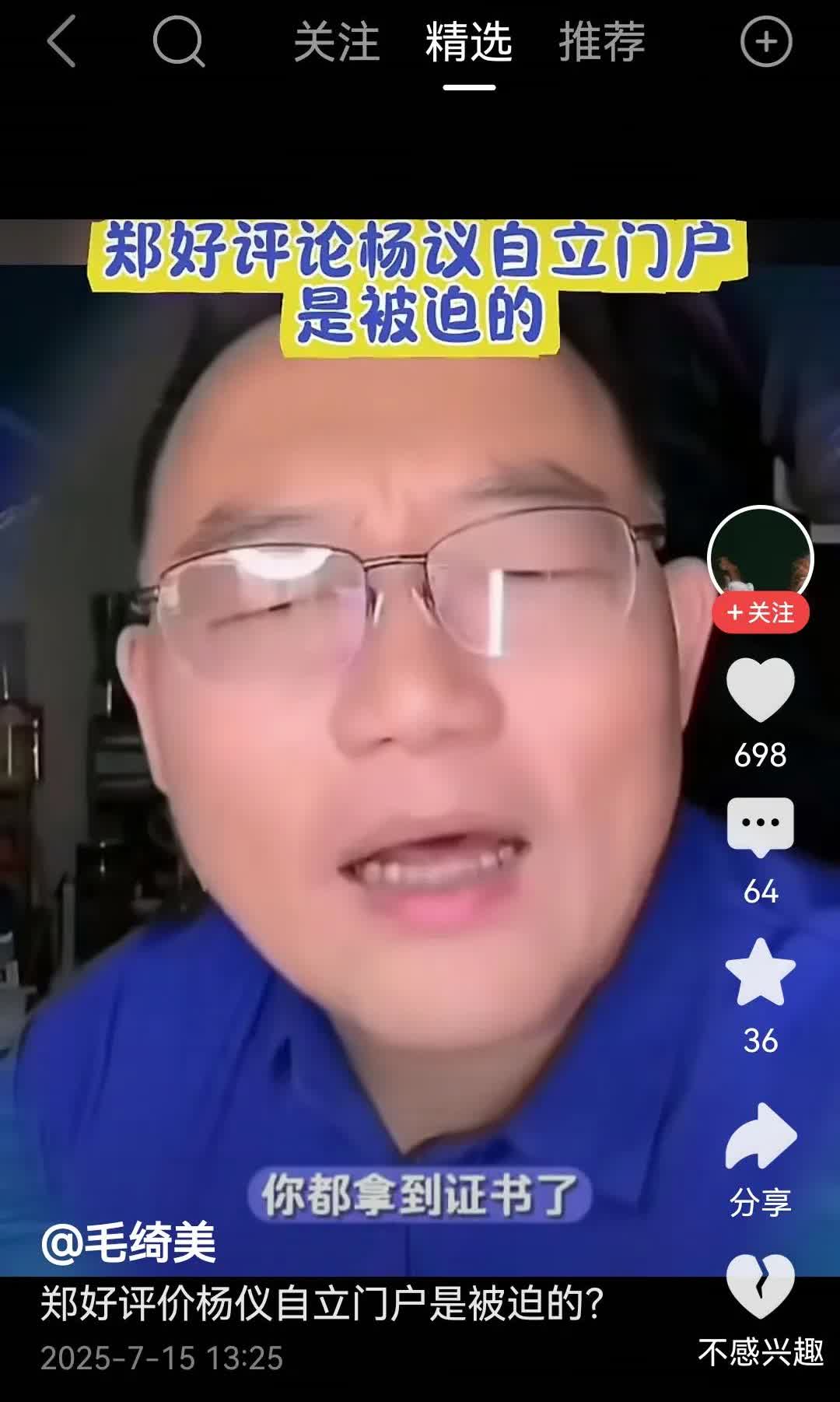 德云社的怼神恰好暗指海河战神杨老五,这人看似机灵,实际上却是圈里最蠢的,被侯老二给忽悠了。要知道啊,原本在相声圈,代父收徒就不被认可,可谁能想到五弟竟然深信能忽悠的二哥呢。 又是弄证书,又是拍合照,又是上坟,又是念誓词,搞得就像情景剧似的,在网上吸引了一大波流量,忽悠了不少观众。之后突然想要举行仪式,结果整个同行都没人去。到最后,就连侯老二这个跟他最铁的人都没去。没办法,只能自立门户了。说白了,这就是给自己找个台阶下,挽回点脸面罢了,谁会傻到有门户不拜呢,实在是没辙了。