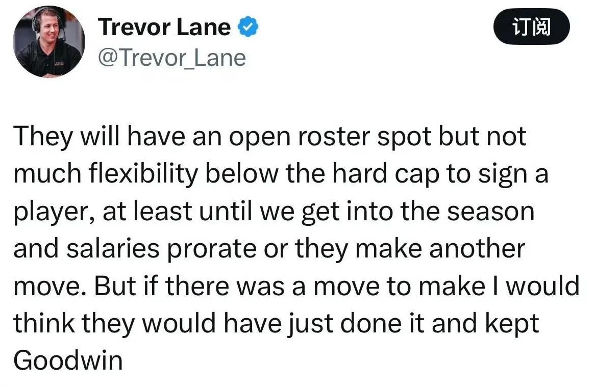 说白了就是无奈,湖人只要想走交易,别人就想趁机敲一笔,故意抬高要价,所以为了给斯玛特腾资产,只能裁掉古德温,交易太难做,只能等下赛季中期了。