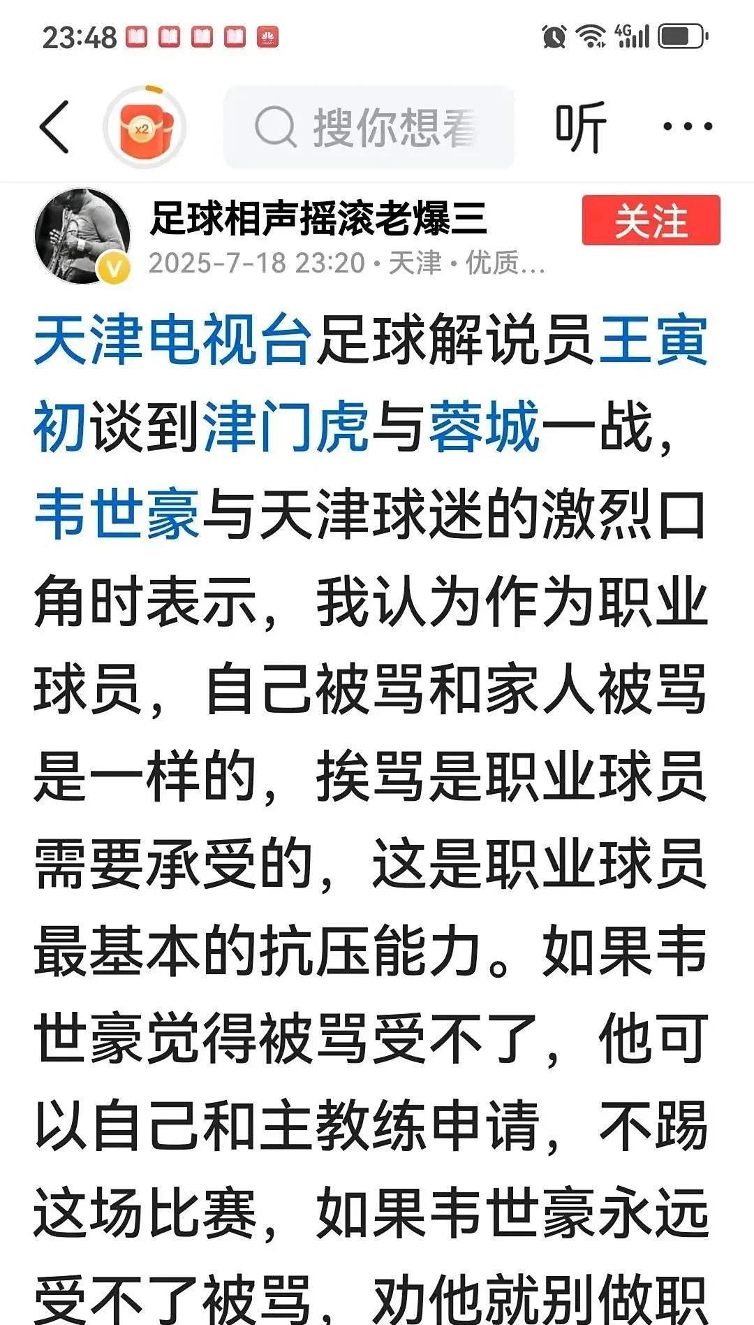 王寅初的意思大家也可以骂天津球员及家人,职业球员就该承受[捂脸哭]