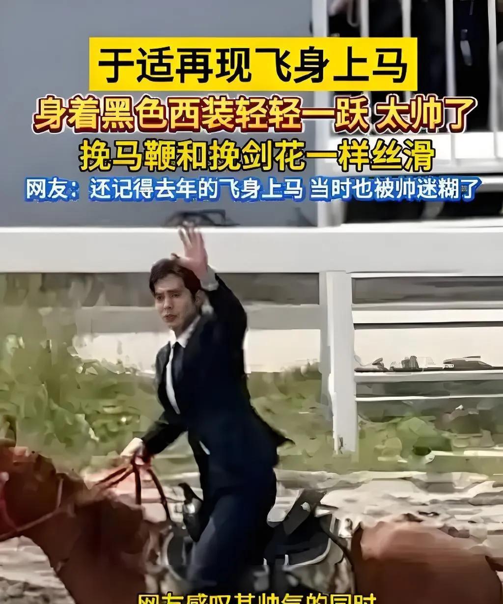 近日,演员于适再现飞身上马的精彩画面,瞬间点燃大众热情。他身姿矫健,如猎豹般迅猛