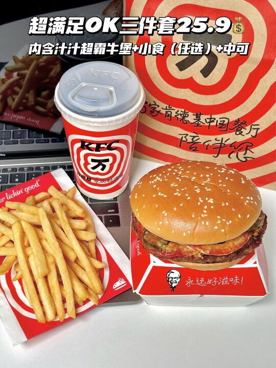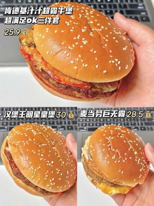 同样是汉堡+薯条+饮料,肯德基牛堡套餐25.9r,麦当劳巨无霸40+,汉堡王皇堡35+,这差价都够买杯奶茶了!