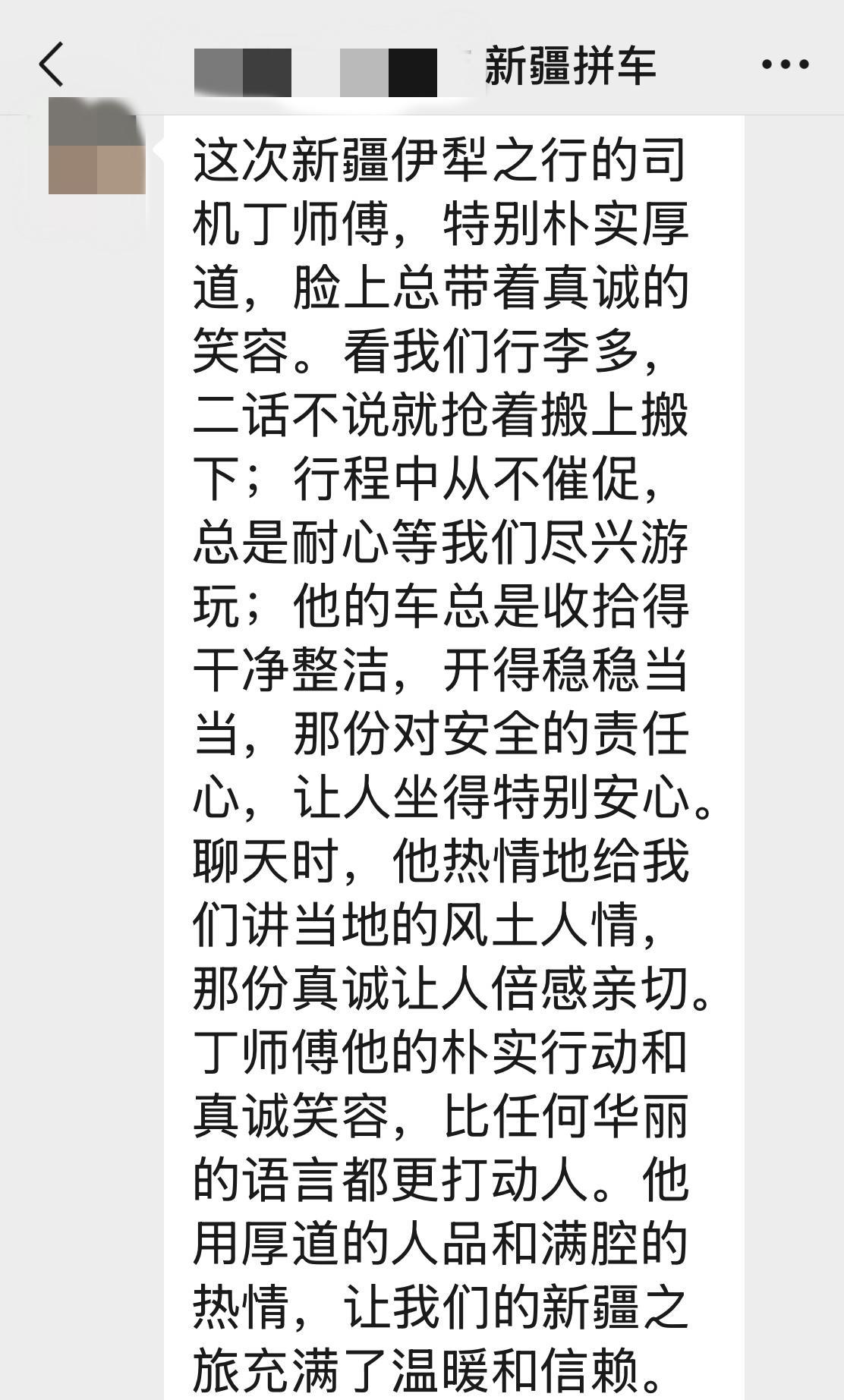 6个女子的新疆拼车自由行,收到这样的反馈很开心,感谢信任。 如果你有9天时间,去