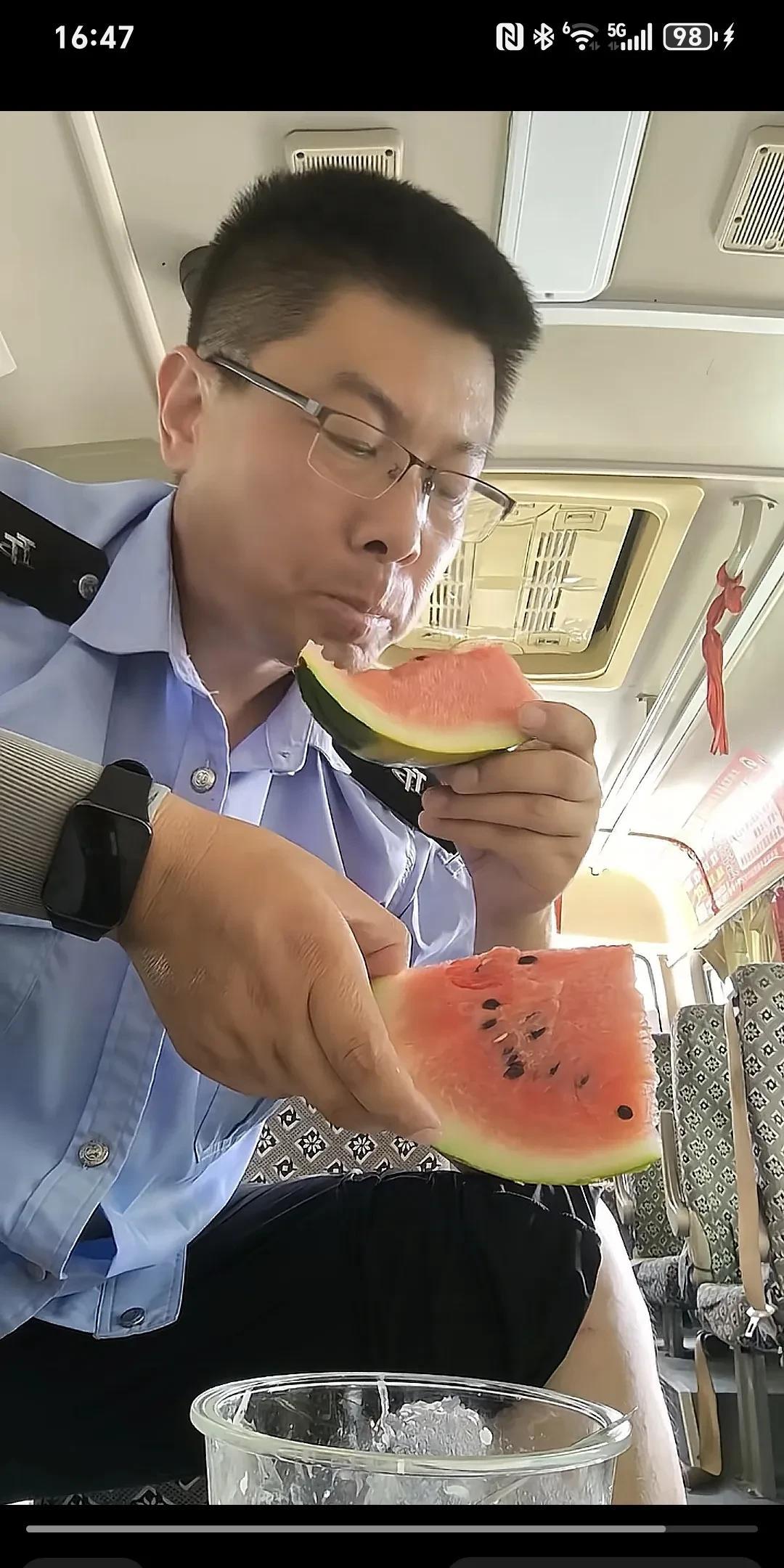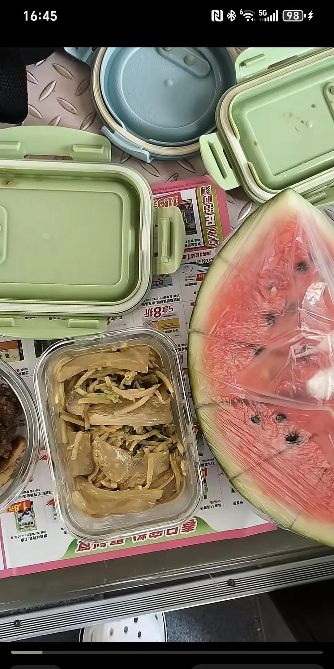 老妈又来送饭来了,今天妈妈做的是炖土豆,麻汁拌拉皮,一杯日照绿茶,好吃的冰镇西瓜~ 看到年迈的妈妈给你送来了可口的饭菜,看你认真的吃着妈妈做的饭菜那是一种幸福,公交司机也是很辛苦的,请你休息的时候多陪陪老人。 永远只有长辈愿意年复一年的给儿女送饭吃,没有几个儿女愿意日复一日给长辈送饭吃。 有妈真好,有妈就有家,没有妈了一个大家庭就散了,好好珍惜有妈的日子[祈祷][祈祷][祈祷]#老妈的菜谱# #妈妈送餐#