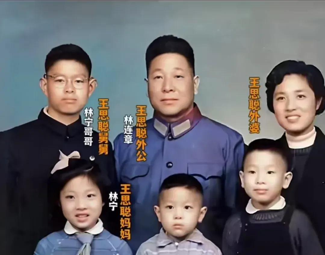 这是王思聪外公一家的合影照,外公林连章身着军服,表情严肃,他1917年出生,参加过许多重要战役,荣获两枚勋章,被授予大校军衔。王思聪的外婆一脸贤惠,属于那个年代标准的女性长相。照片上还有四个孩子,王思聪的妈妈也在其中,十分可爱。
