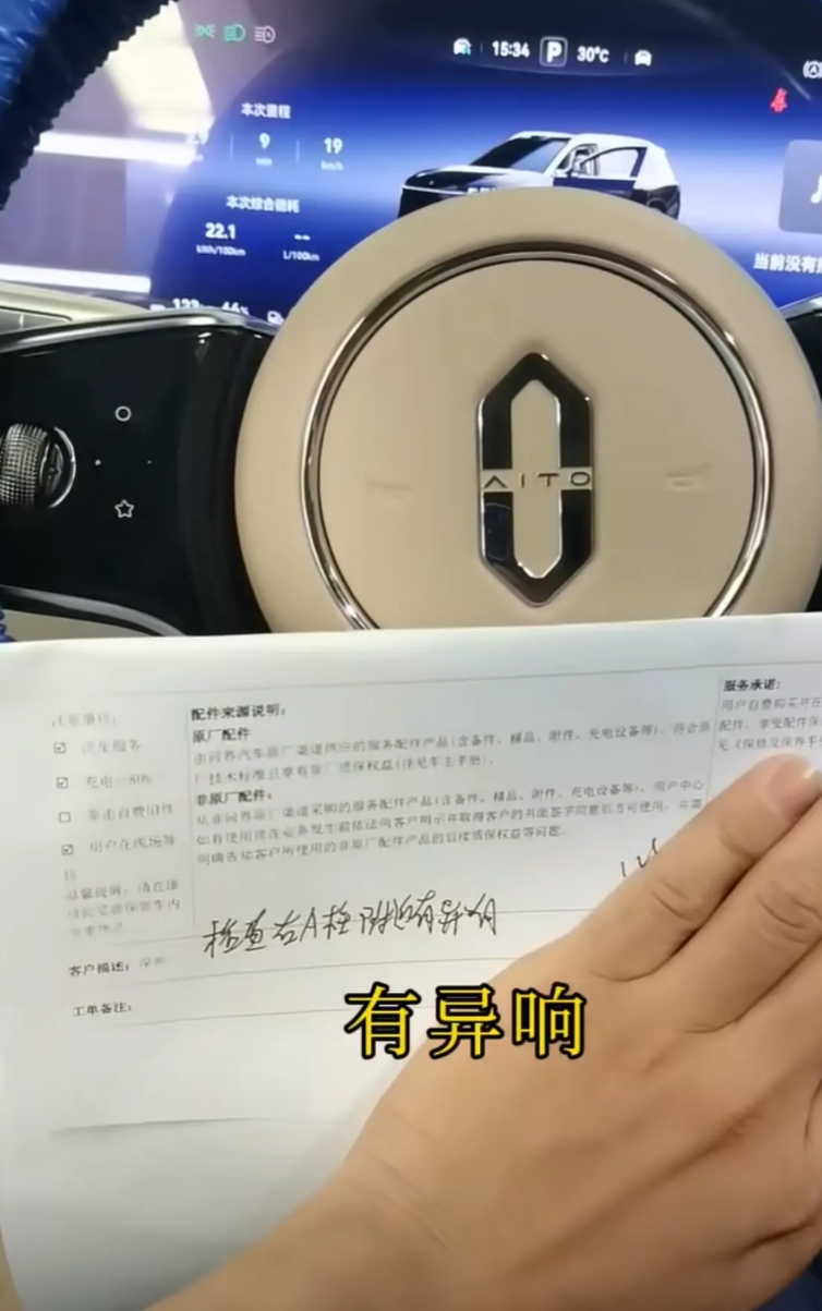 原来搞了个乌龙!问界M9车主发现副驾有异响。