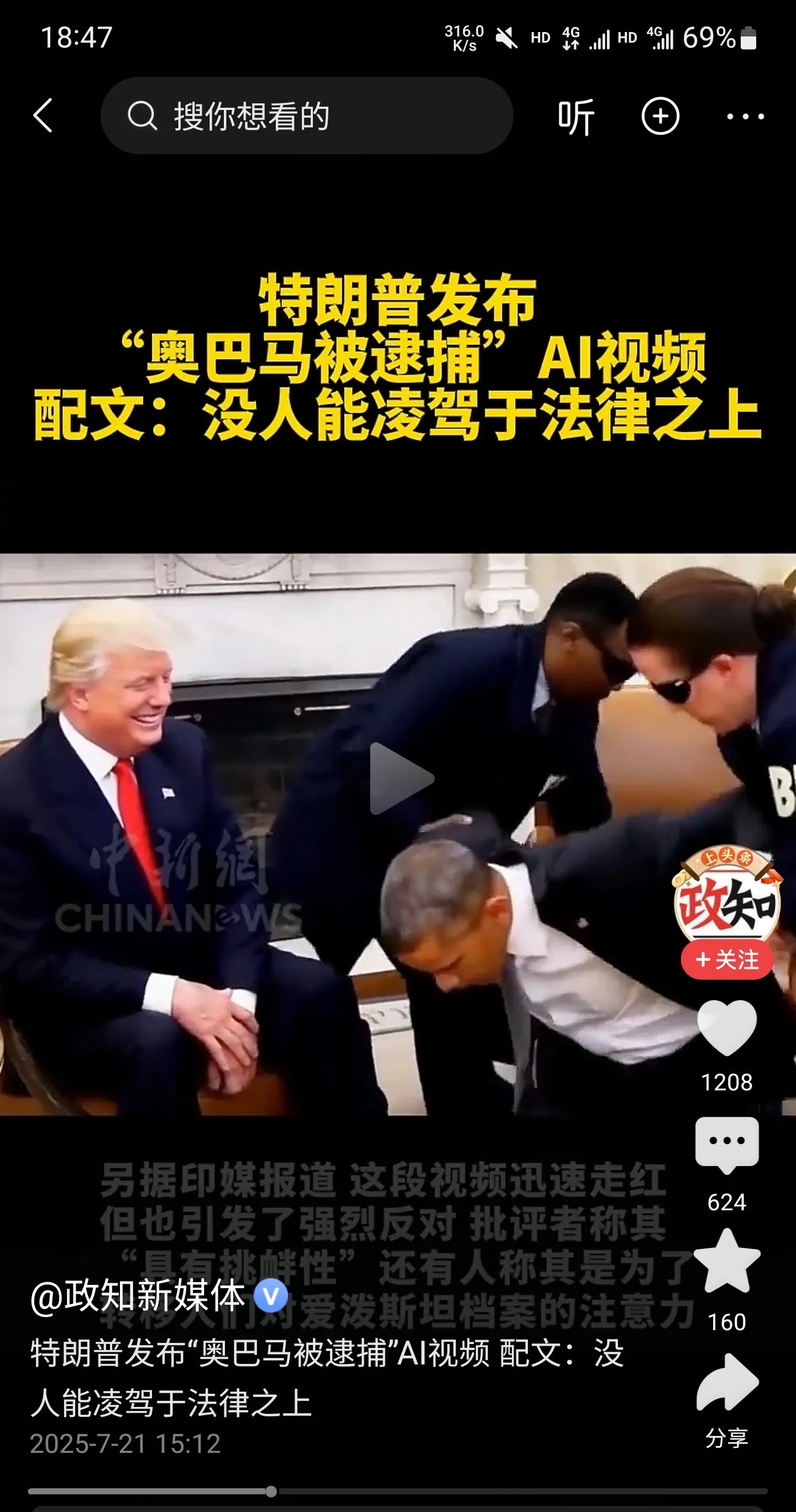 视频里,奥巴马被FBI探员拖拽跪地,特朗普全程笑着围观,最后还看到奥巴马穿着橙色囚服站在铁窗后。