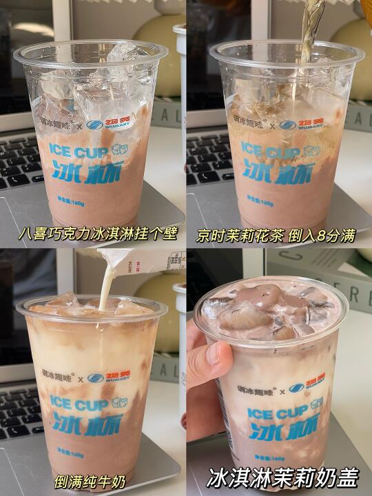 配方:八喜冰淇淋+茉莉花茶+调冰杯