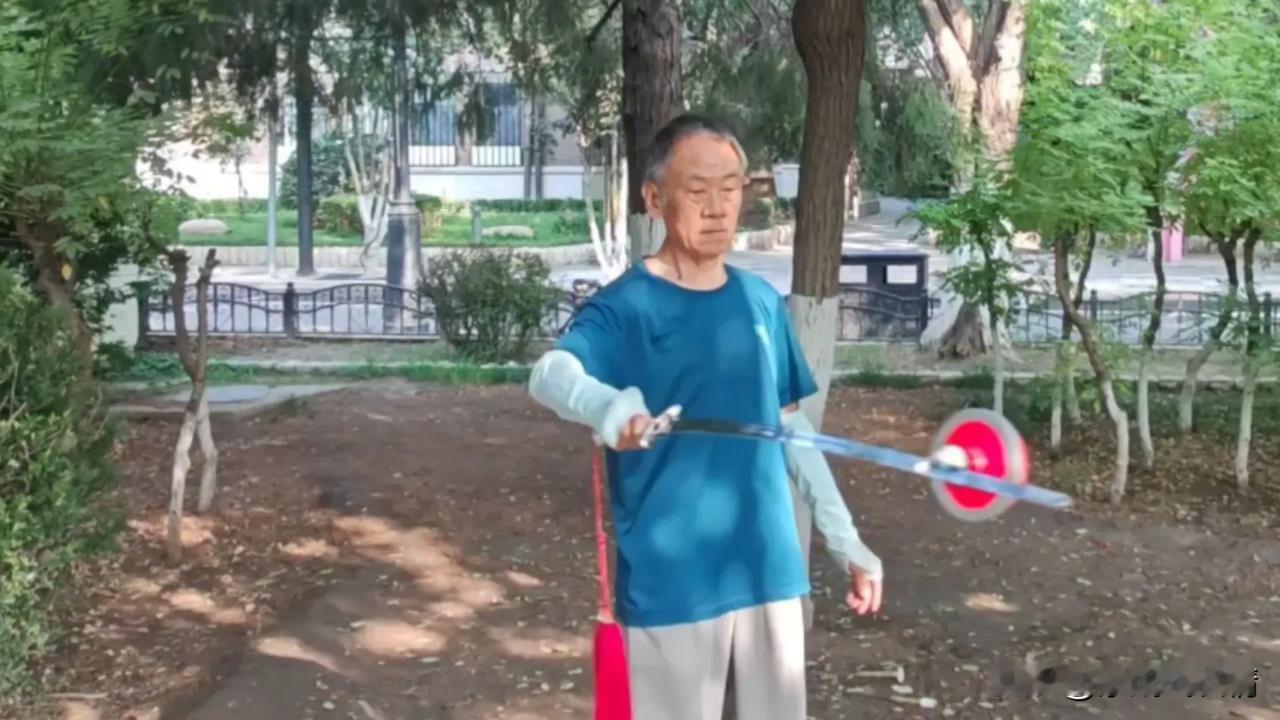 大爷晨练瞎捣鼓新玩法-剑刃推磨!